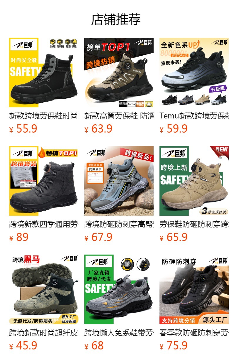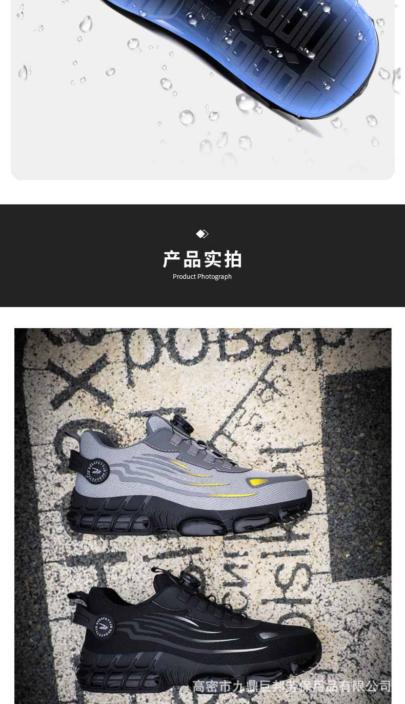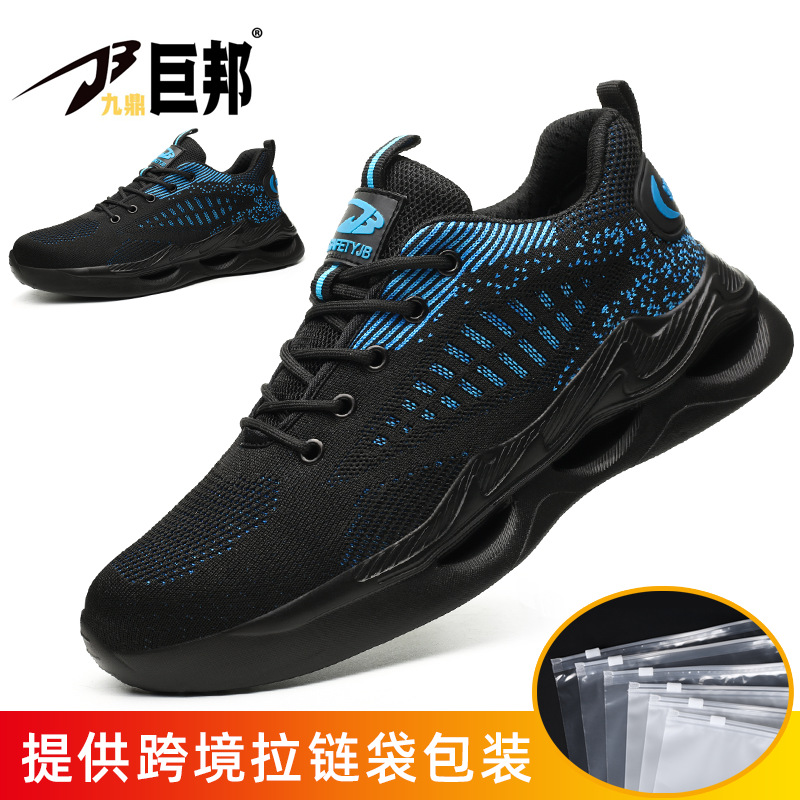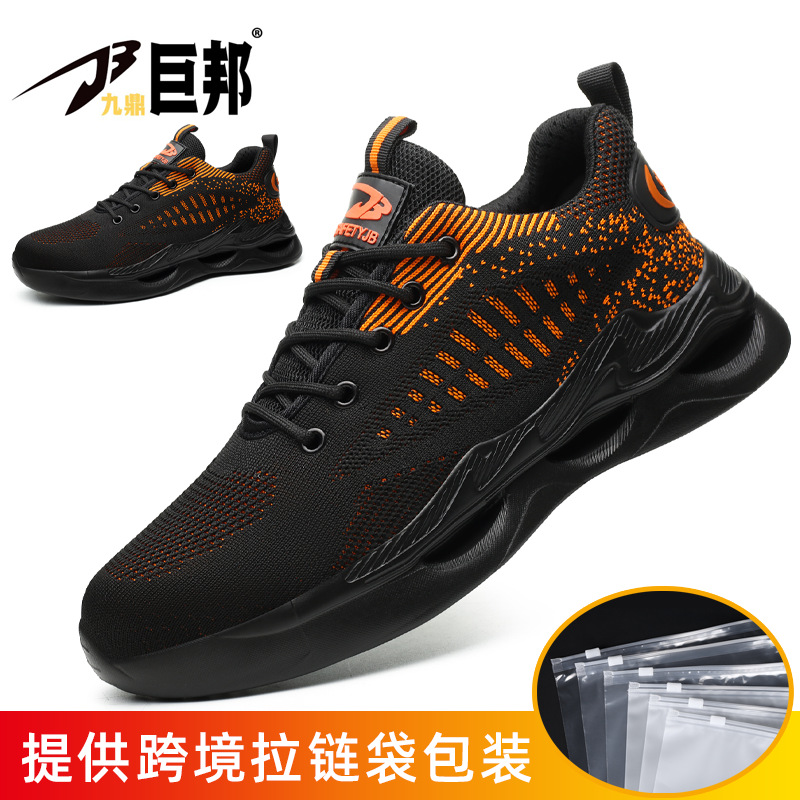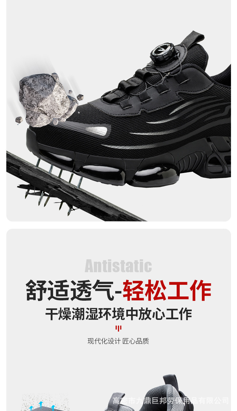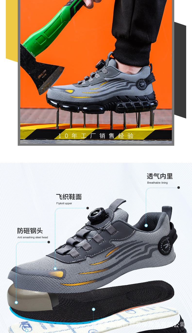 국경을 넘는 간편 신발끈 없는 안전화, 회전 버튼 남성용 안전화, 플라이 니트 경량 통기성 안전화스토어 가기