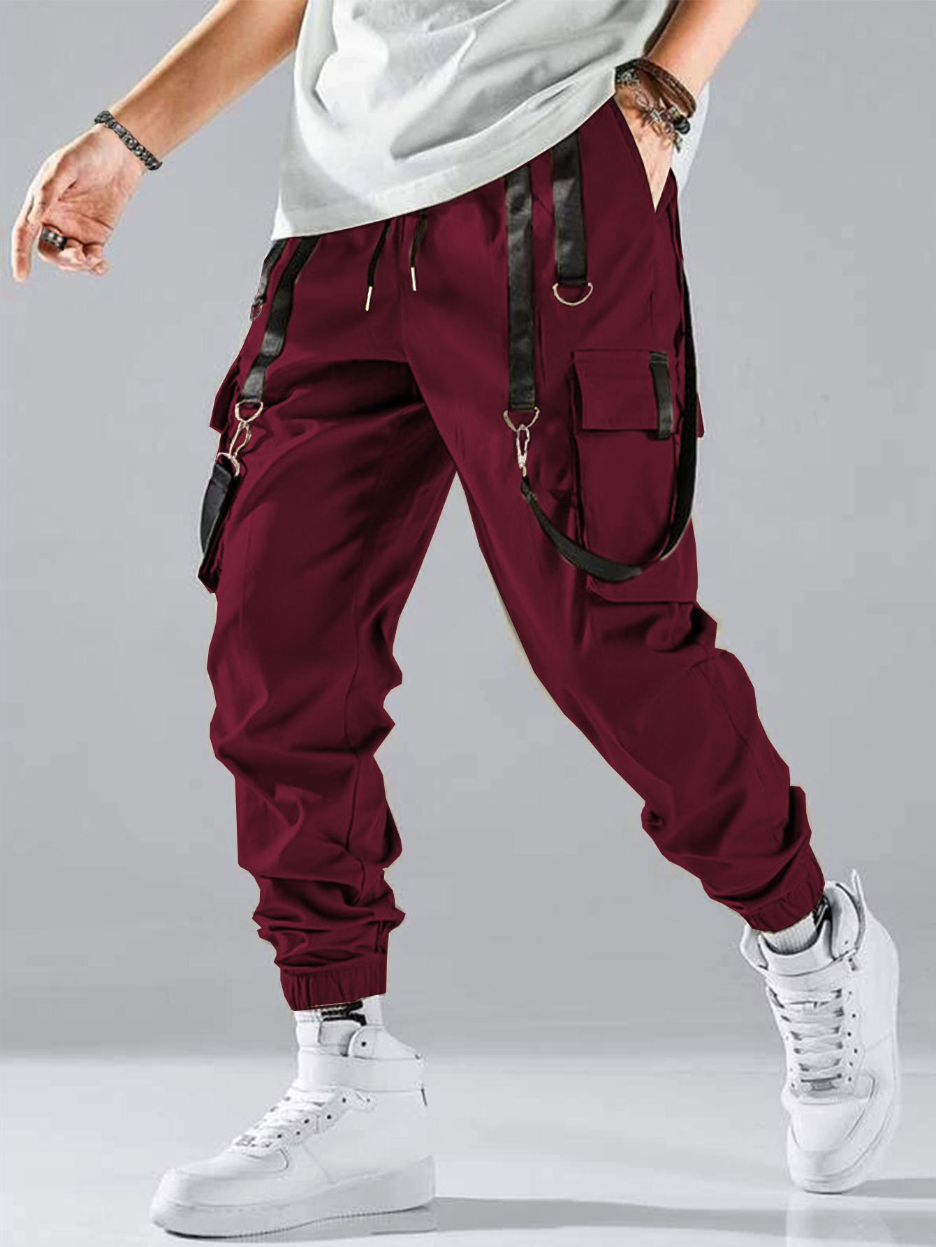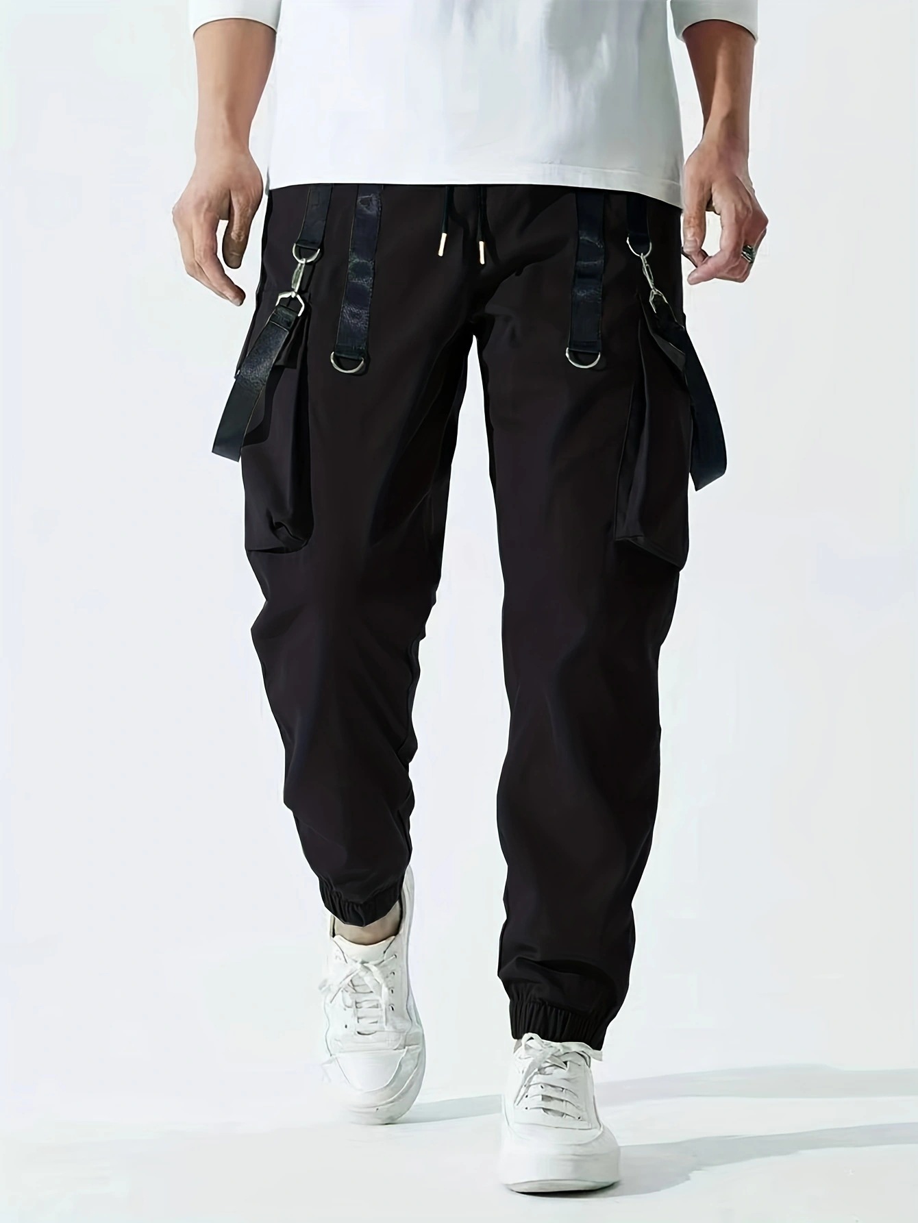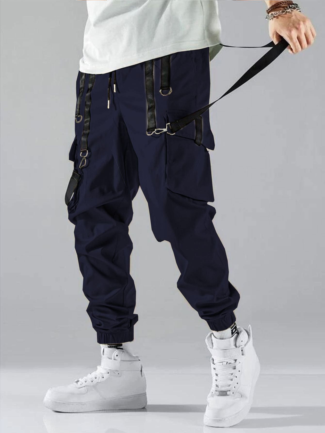 2024 가을, 겨울 새로운 남성 패션 바지 아마존 국경 대외 무역 웨빙 작업복 졸라 매는 끈 스포츠 바지