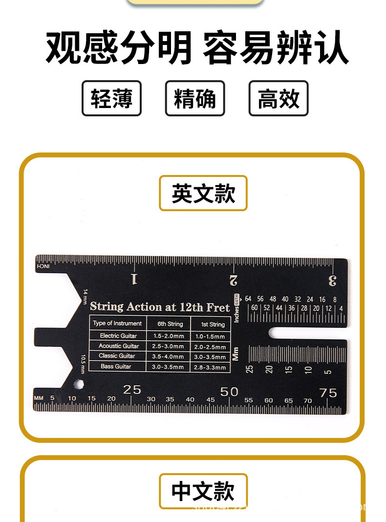 기타 액세서리 문자열 거리 측정 통치자 전기베이스 튜닝 스트링 높이 측정 현악 거리 캘리퍼 조정 피아노 목 알루미늄 합금스토어 가기