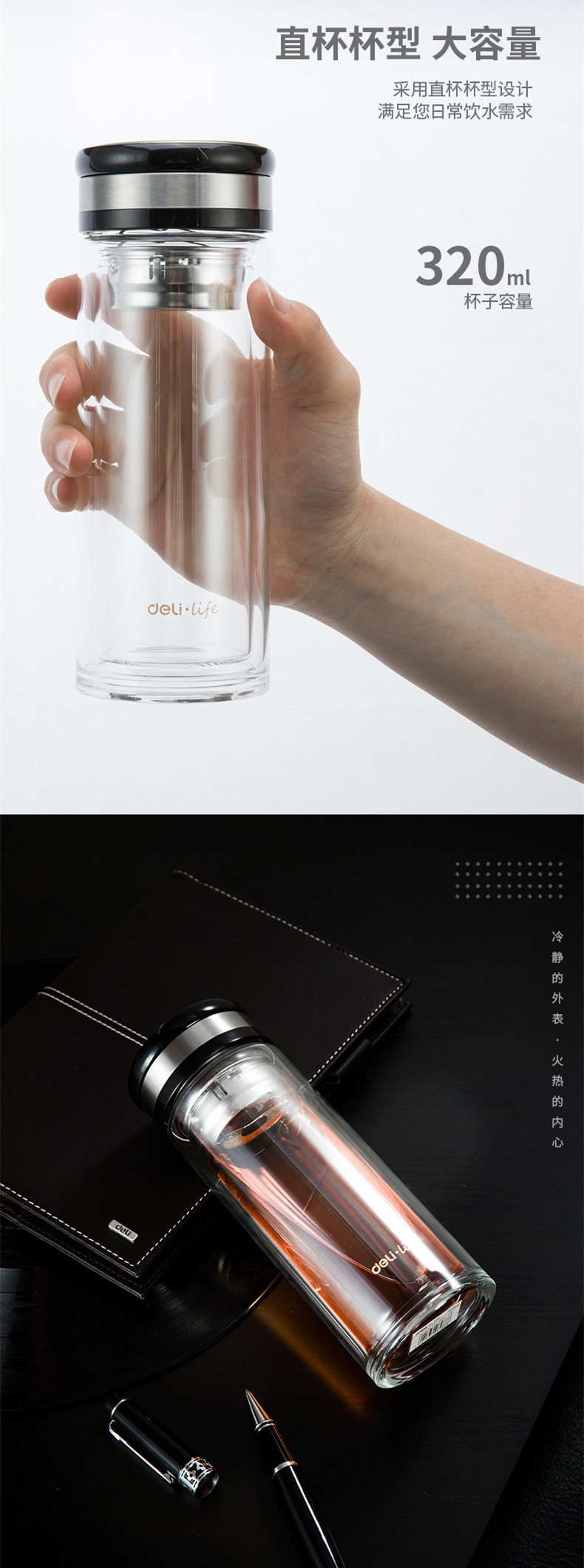 델리 8988 유리 높은 붕규산 유리 이중 단열 휴대용 찻잔 필터 차 비즈니스 사무실 물 컵스토어 가기