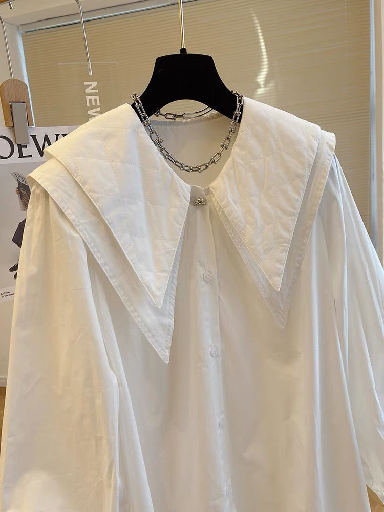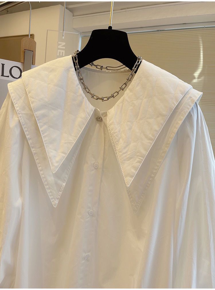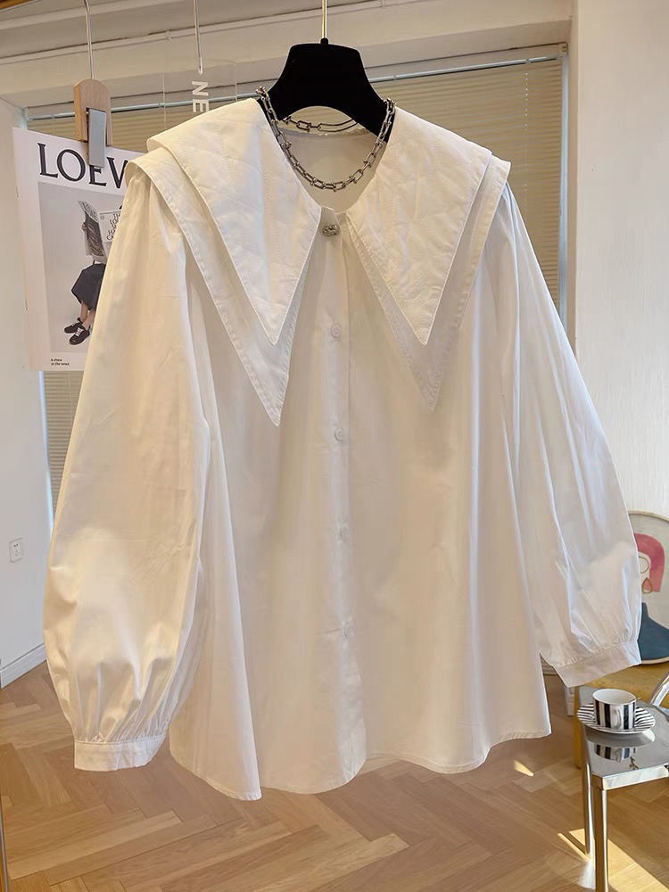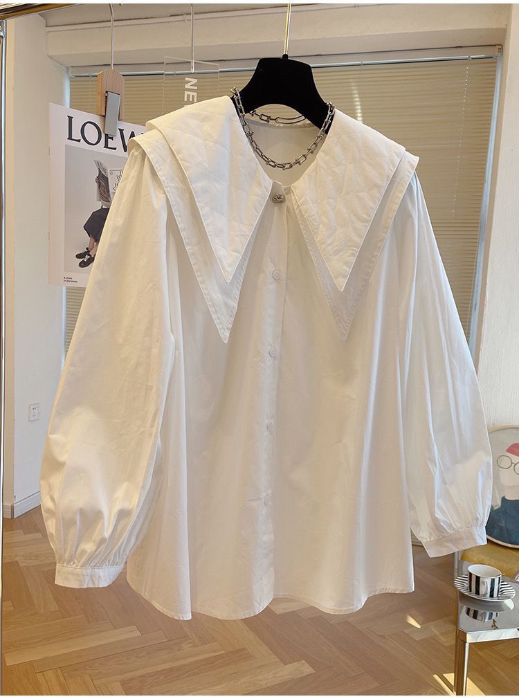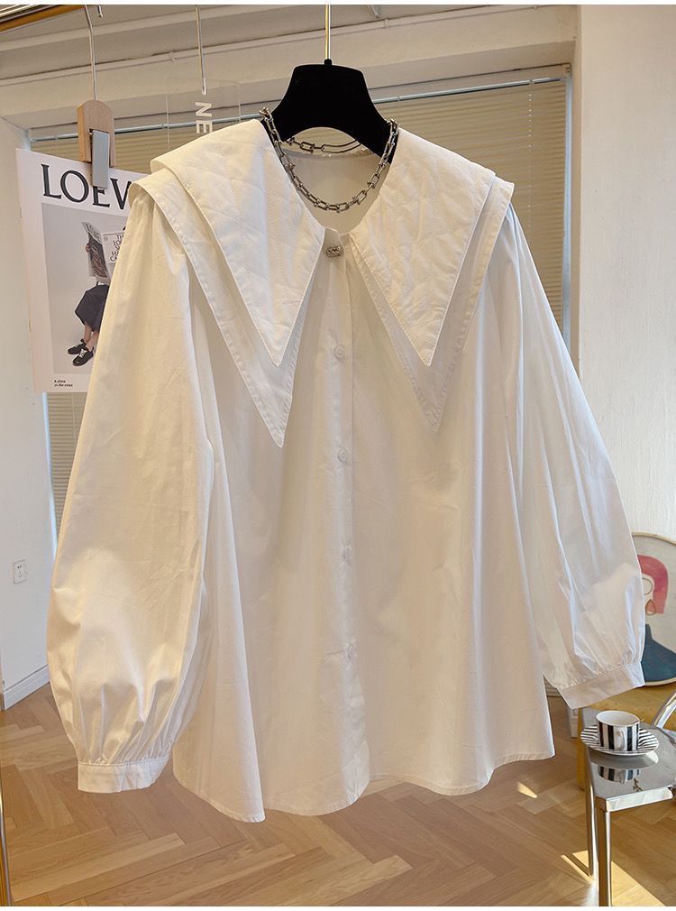 플러스 사이즈 가을 최고 이른 가을 빛 럭셔리 멀티 버튼 느슨한 소녀 더블 레이어 프랑스 인형 칼라 긴 소매 셔츠