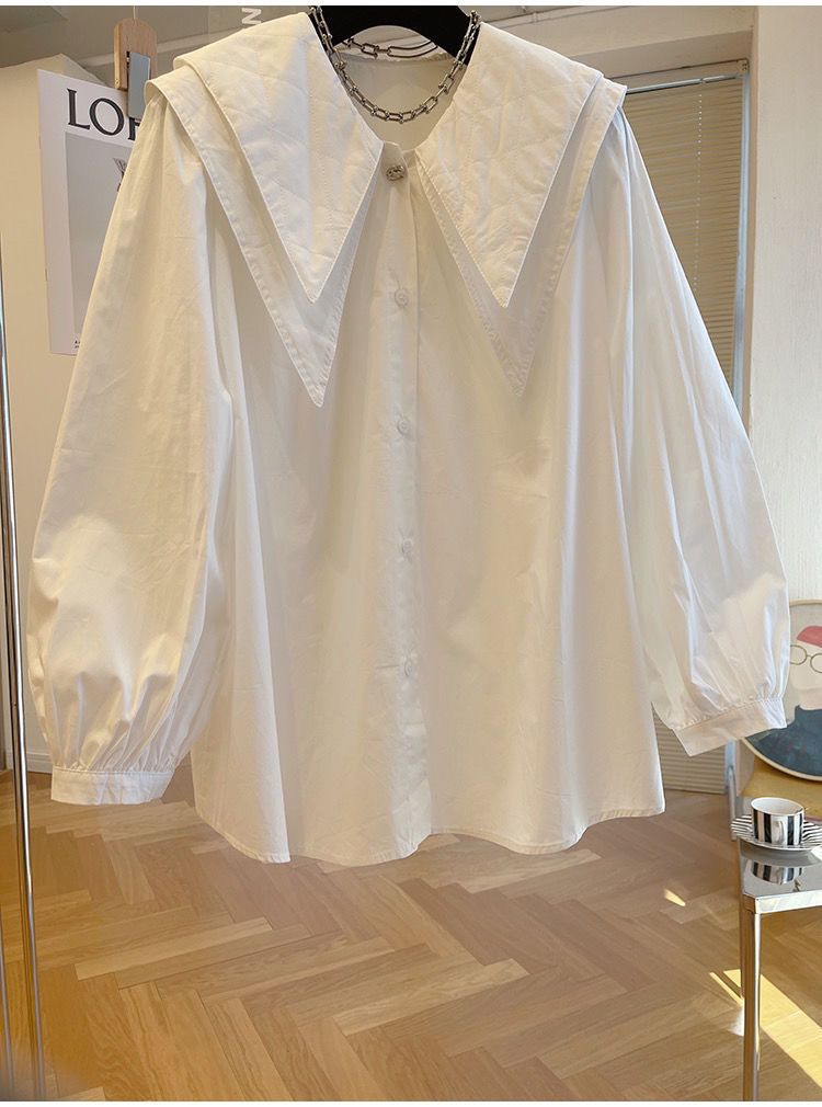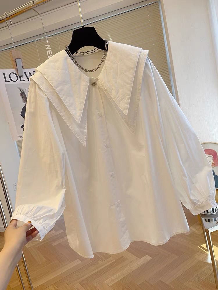 플러스 사이즈 가을 최고 이른 가을 빛 럭셔리 멀티 버튼 느슨한 소녀 더블 레이어 프랑스 인형 칼라 긴 소매 셔츠스토어 가기