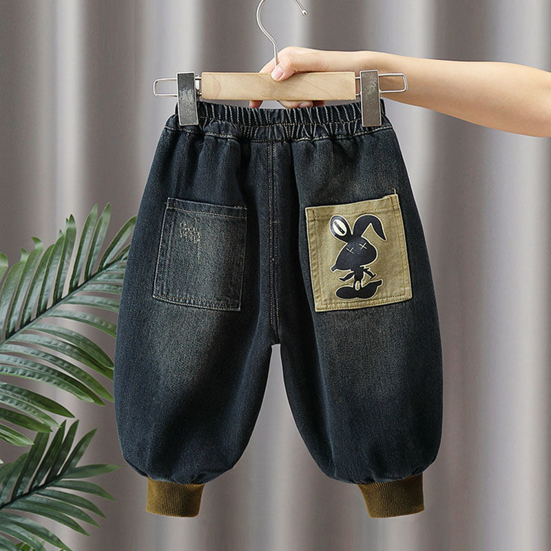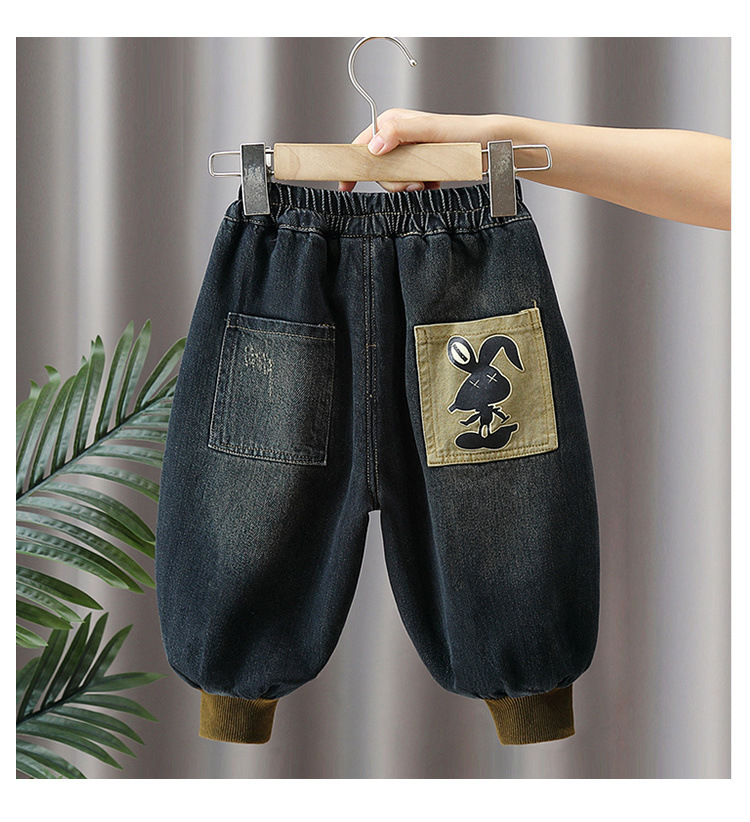 남아 기모 청바지 가을과 겨울 새로운 어린이 두꺼운 원피스 벨벳 캐주얼 바지 아기의 겨울 따뜻한 바지