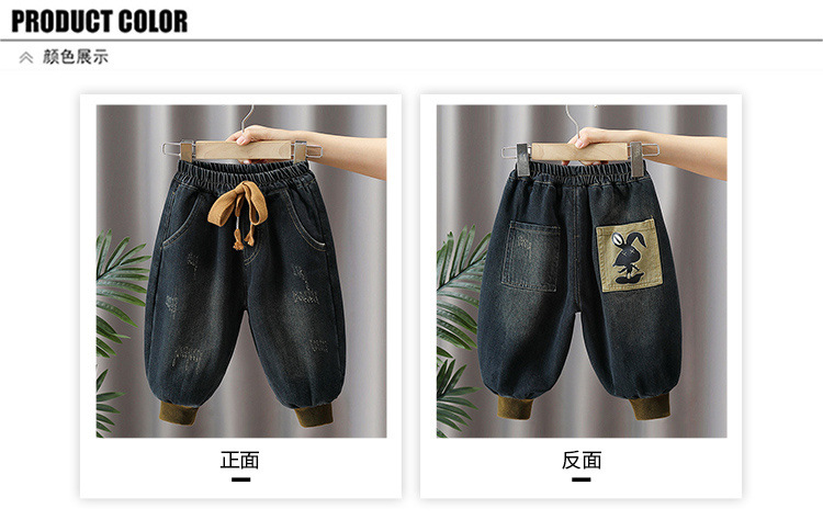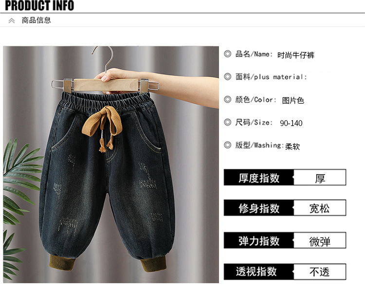 남아 기모 청바지 가을과 겨울 새로운 어린이 두꺼운 원피스 벨벳 캐주얼 바지 아기의 겨울 따뜻한 바지스토어 가기