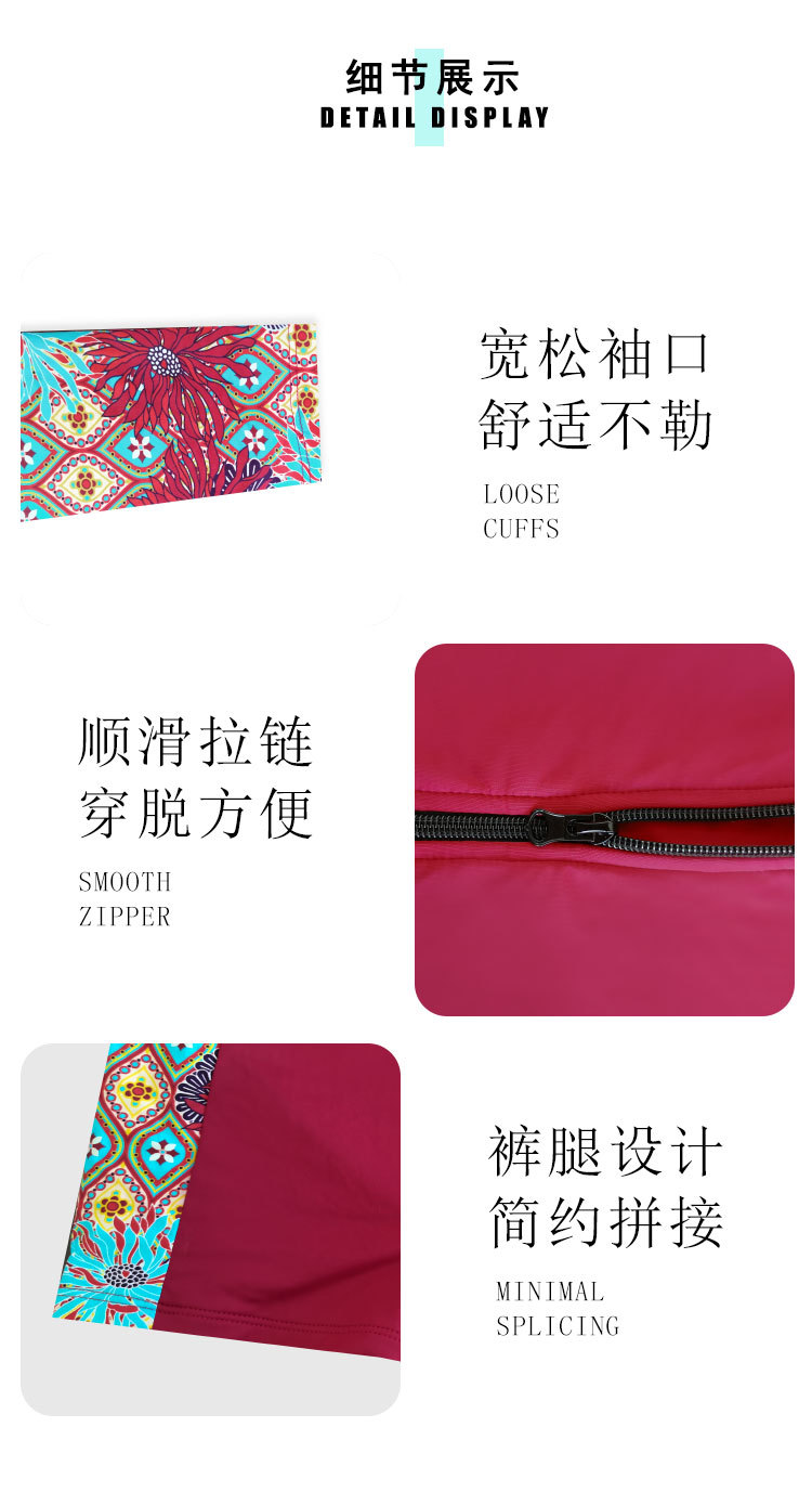 유럽 및 미국 스타일의 원피스 플랫앵글 긴팔 자외선 차단 서핑 수영복 프린트 지퍼 스포츠 경기용 다이빙 수영복
