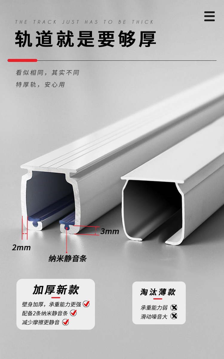 두꺼운 커튼 트랙 알루미늄 합금 이중 침묵 커튼 슬라이드 레일 2MM 커튼 스트레이트 레일 더블 가이드 레일