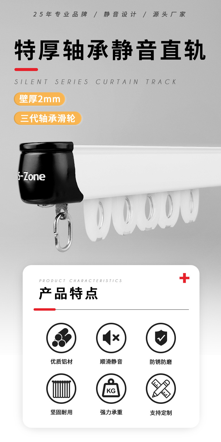 • 베어링 사일런트 휠 모델/이중 레일-벽 장착형