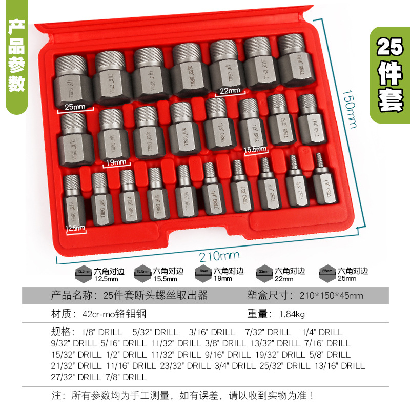 육각 소켓 스크류 리무버 25 개 깨진 헤드 슬라이딩 나사 너트 깨진 녹슨 볼트 캡 리무버