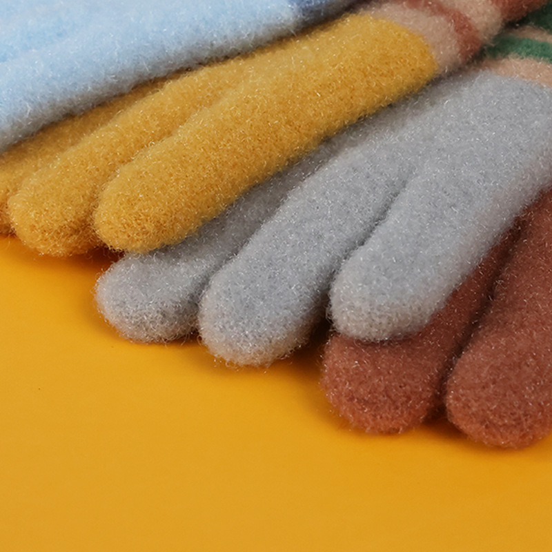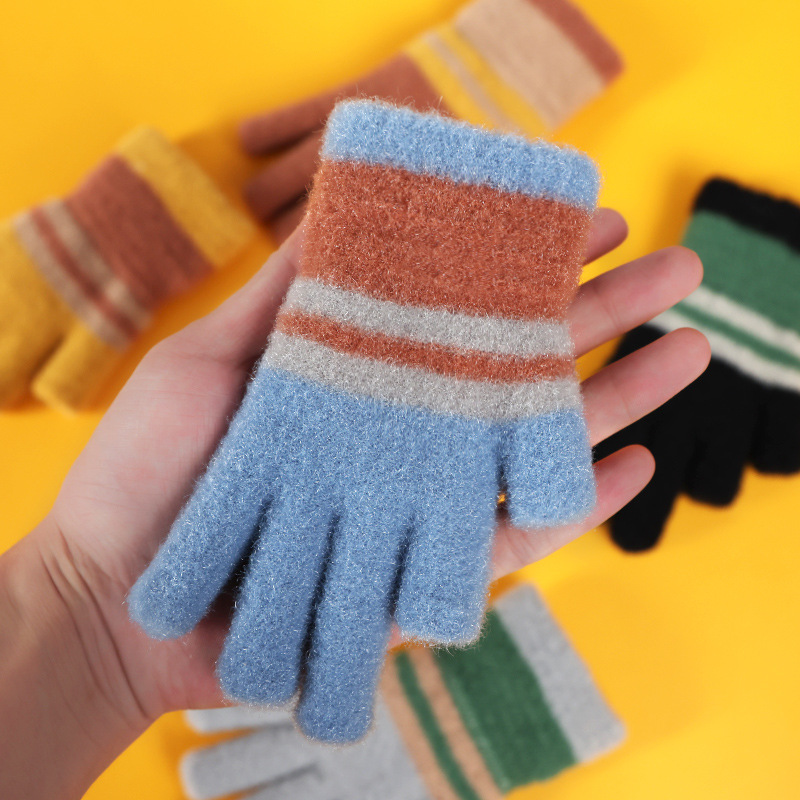 어린이용 따뜻한 겨울 남아용 손가락 없는 귀여운 줄무늬 만화 니트 울 자전거용 방한 학생용 글쓰기 장갑스토어 가기