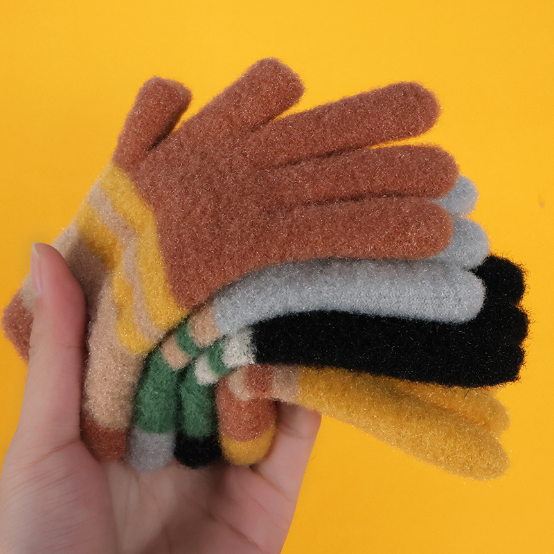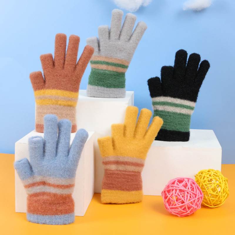 어린이용 따뜻한 겨울 남아용 손가락 없는 귀여운 줄무늬 만화 니트 울 자전거용 방한 학생용 글쓰기 장갑