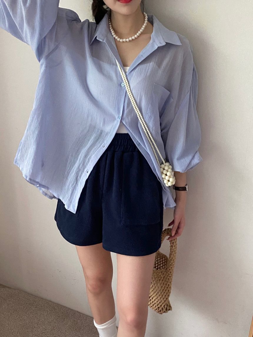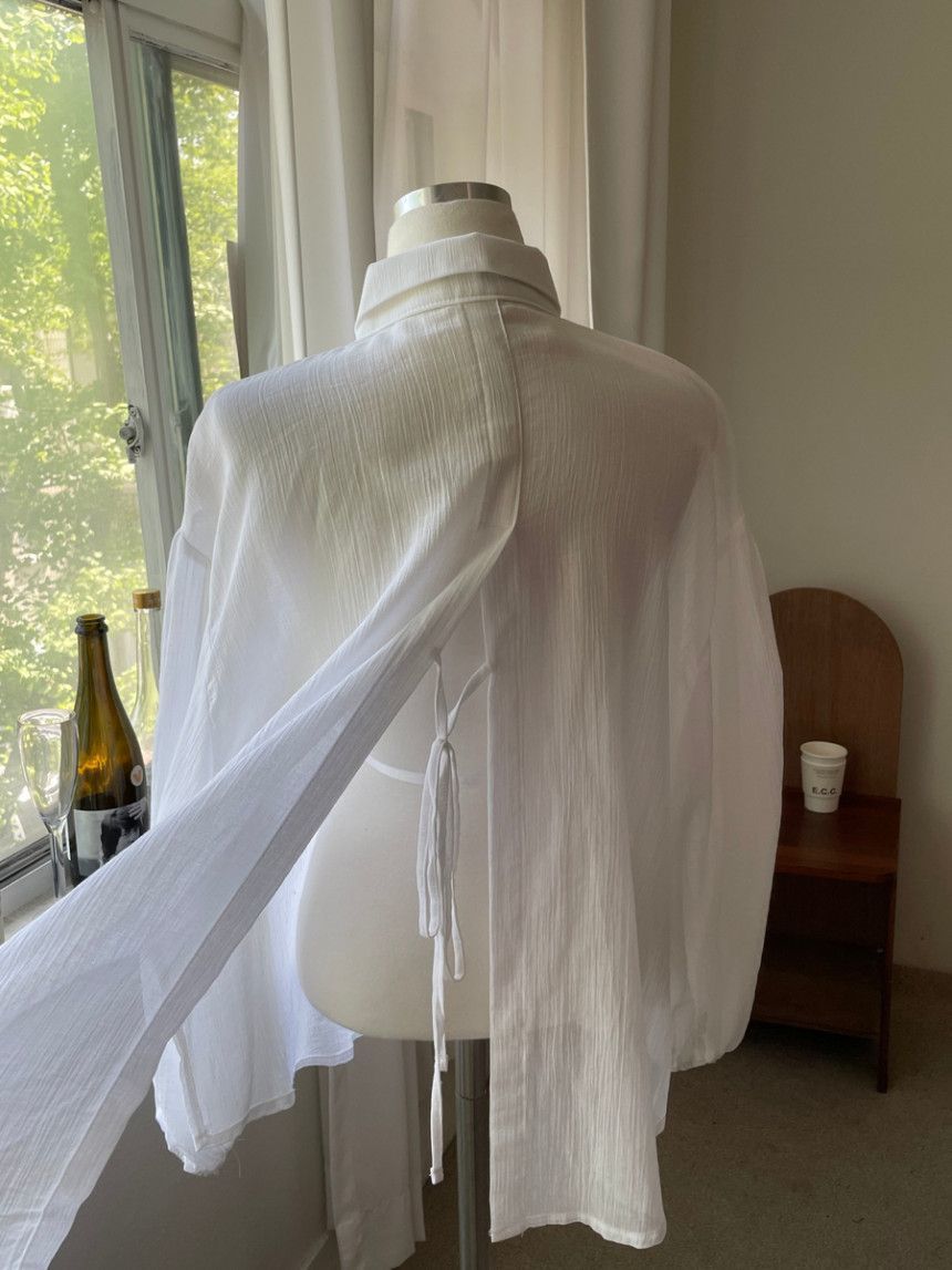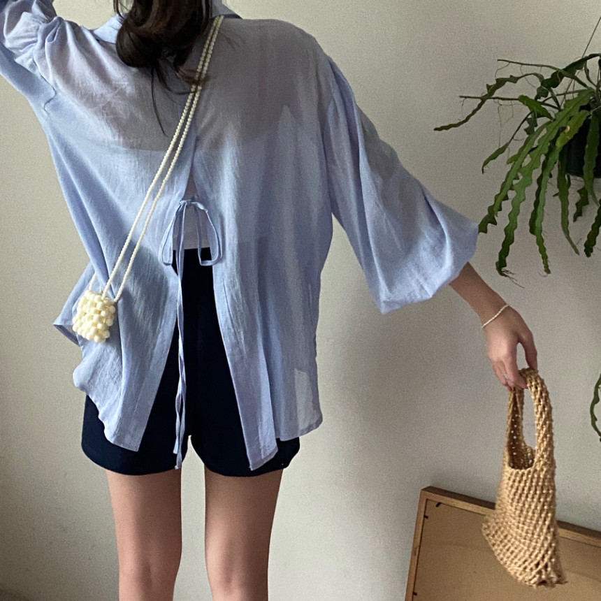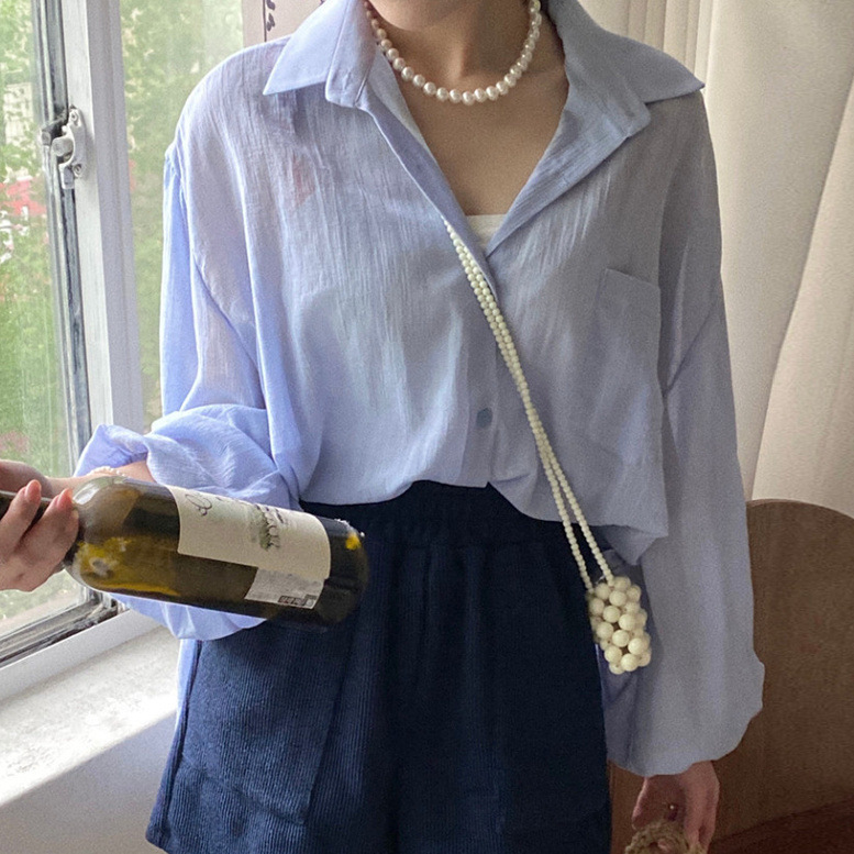 여름 새로운 화이트 쉬폰 선 스크린 셔츠 여성 디자인 센스 얇은 긴팔 웨스턴 스타일 느슨한 올 매치 아우터 카디건스토어 가기