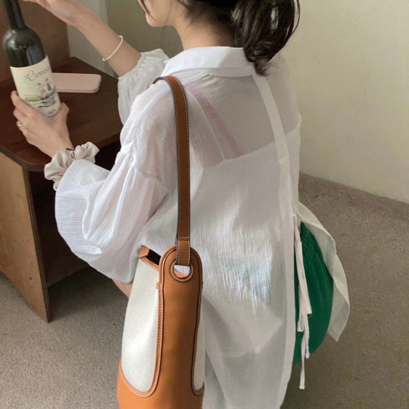 여름 새로운 화이트 쉬폰 선 스크린 셔츠 여성 디자인 센스 얇은 긴팔 웨스턴 스타일 느슨한 올 매치 아우터 카디건