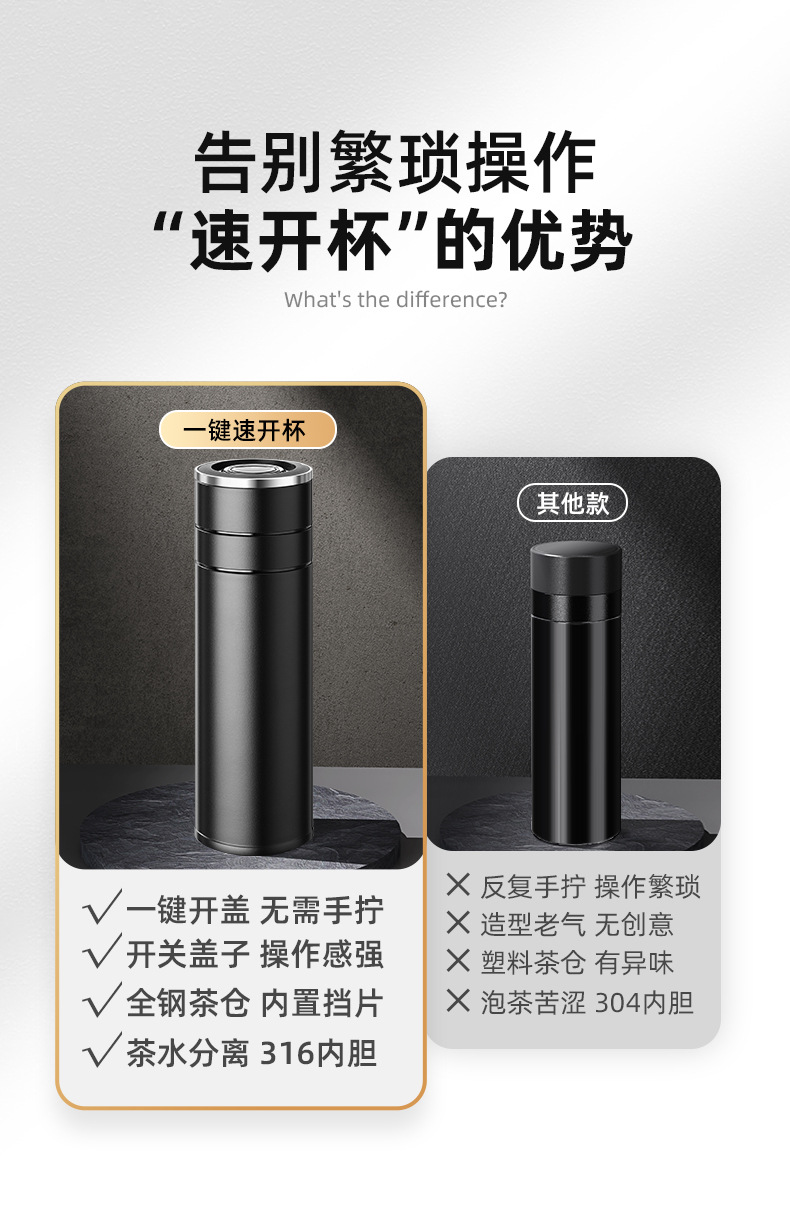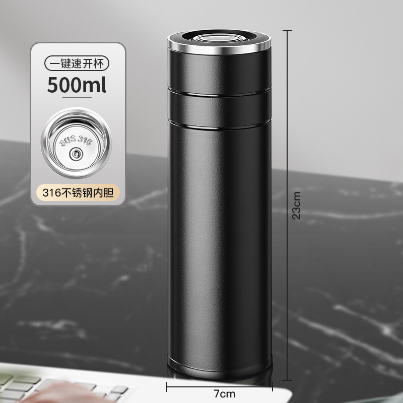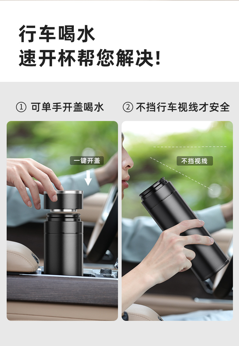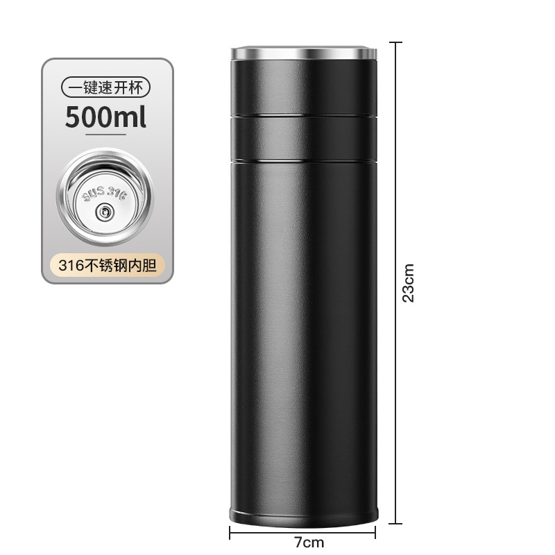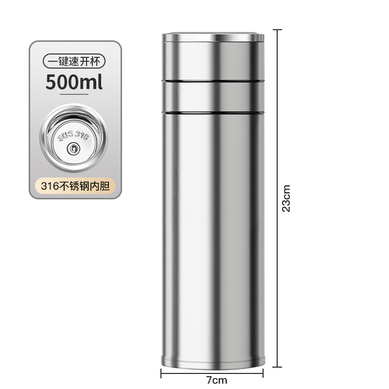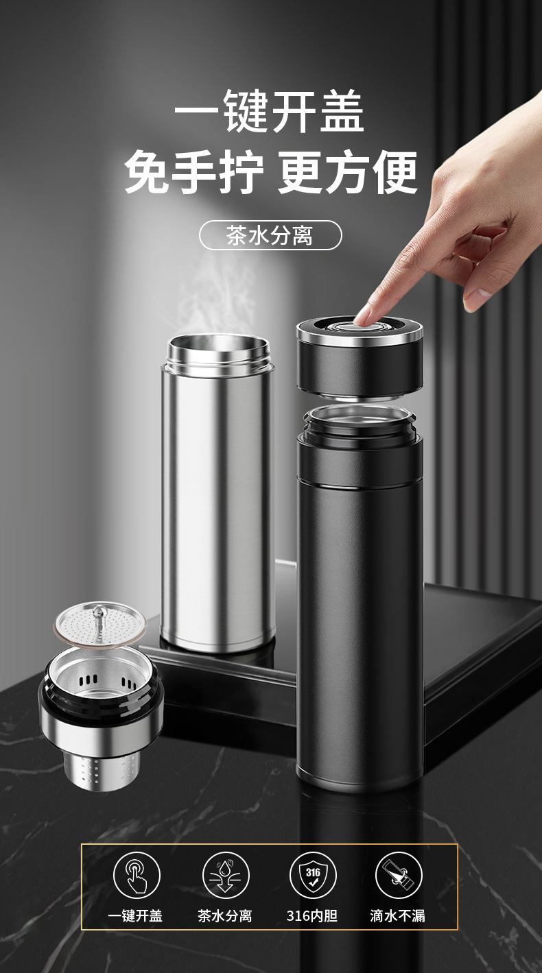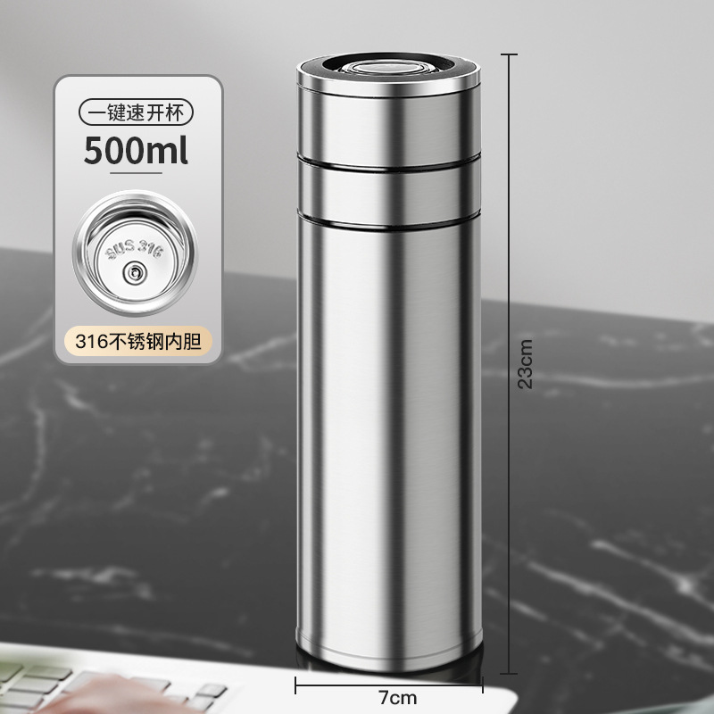 전통적이고 간단한 원 버튼 오픈 뚜껑 보온병 컵 남성용 자동차 316 스테인레스 스틸 차 분리 차 컵
