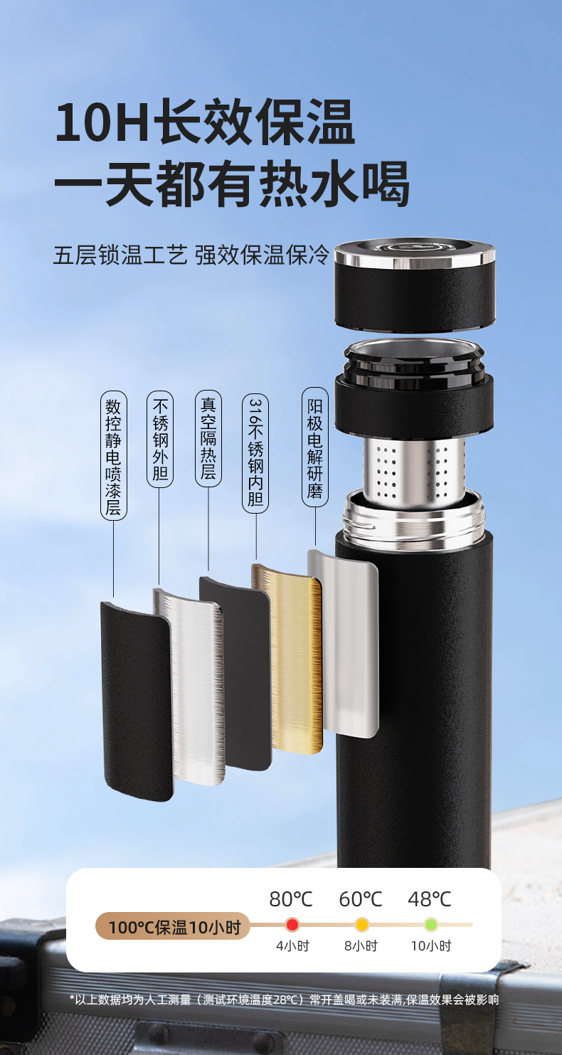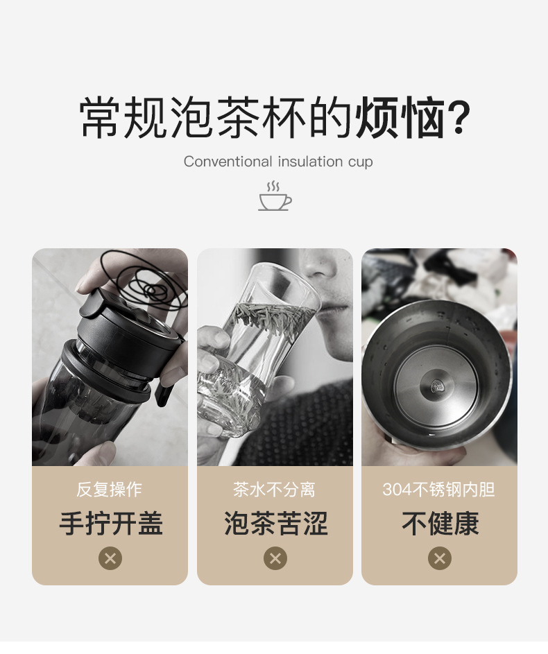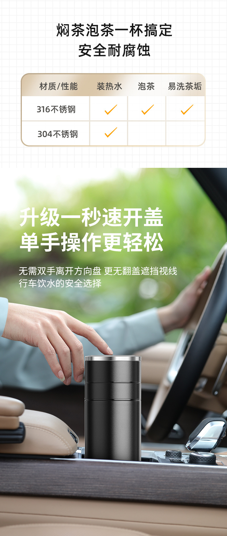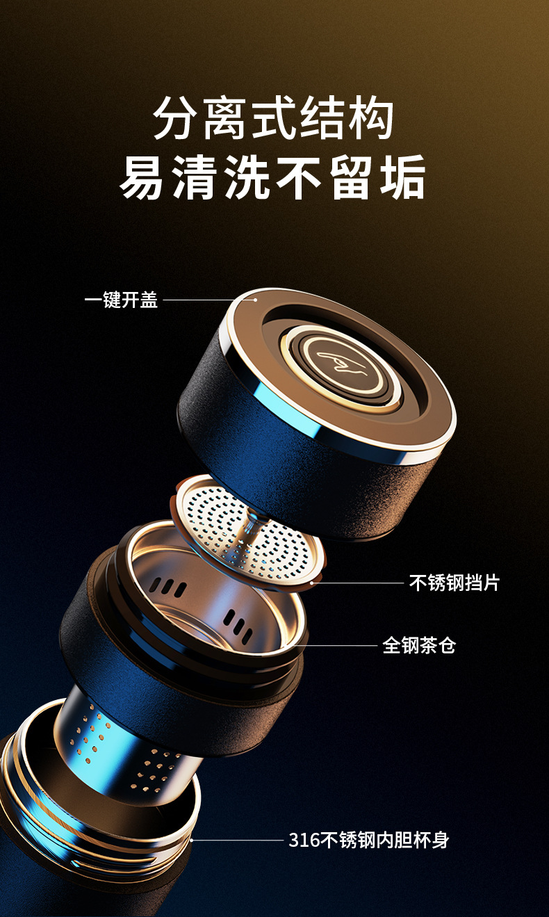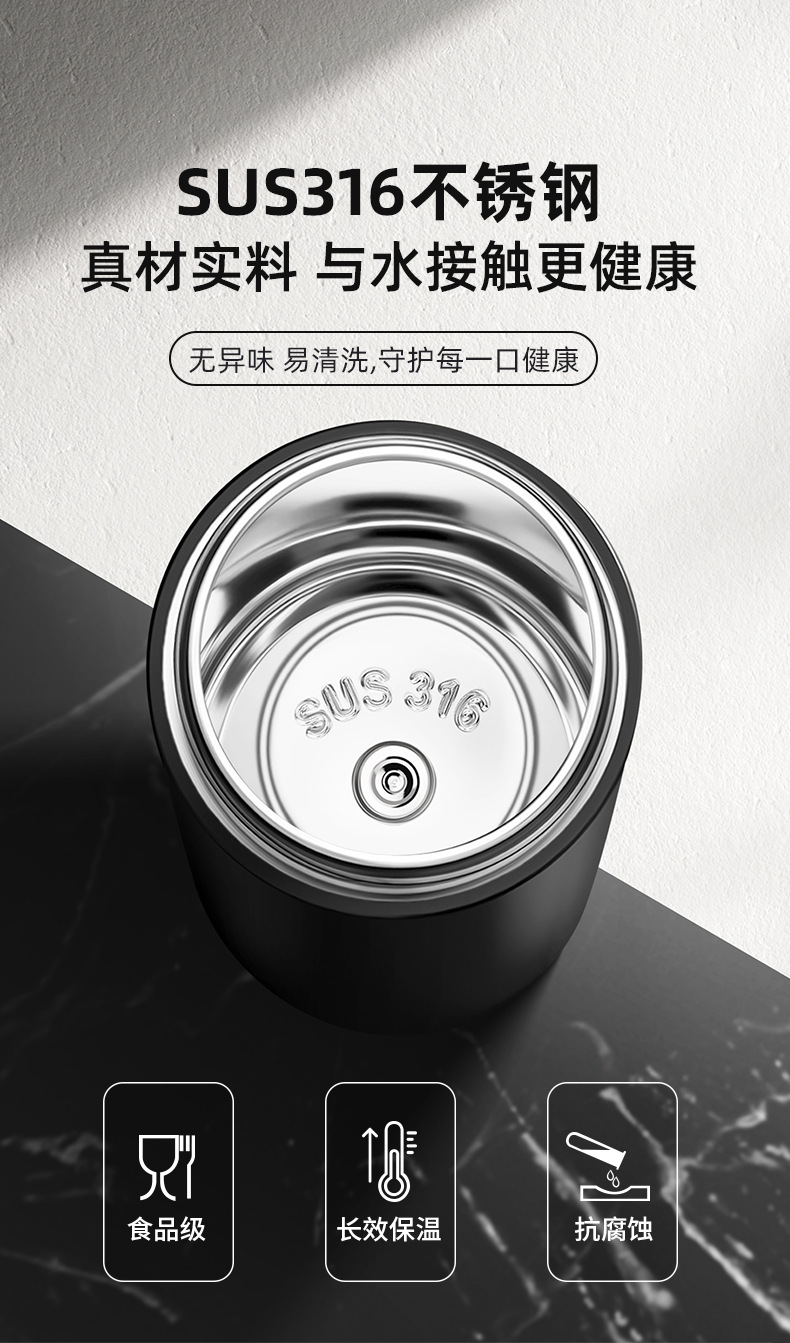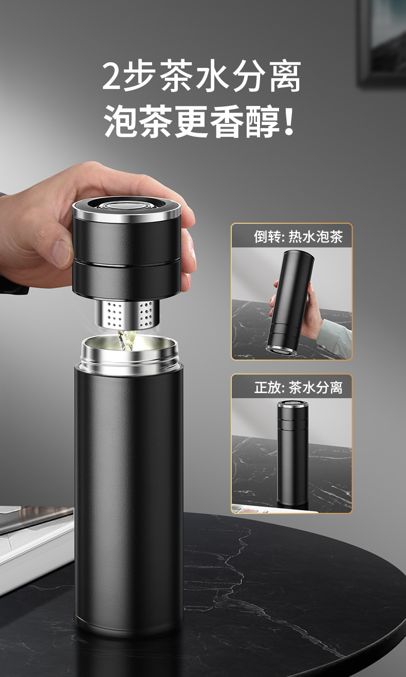 전통적이고 간단한 원 버튼 오픈 뚜껑 보온병 컵 남성용 자동차 316 스테인레스 스틸 차 분리 차 컵
