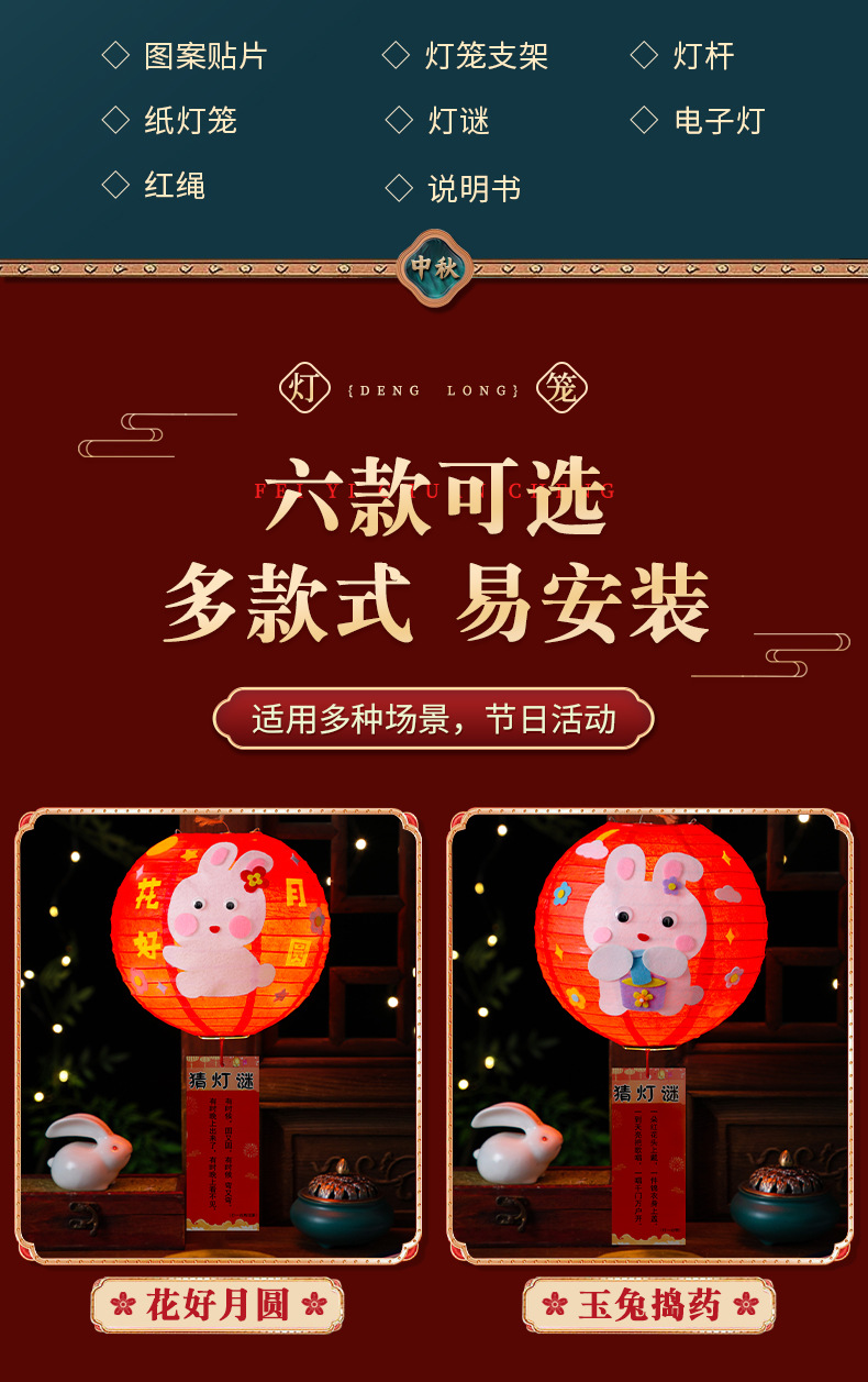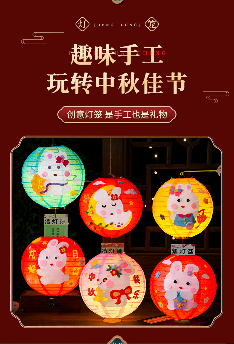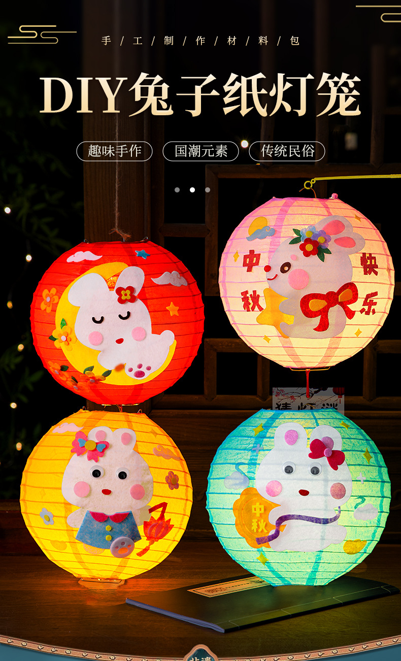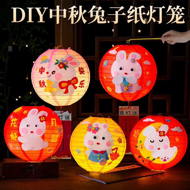 중추절 휴대용 종이 랜턴 어린이 DIY 수제 빛나는 토끼 랜턴 유치원 부모-자식 선물 작은 랜턴스토어 가기