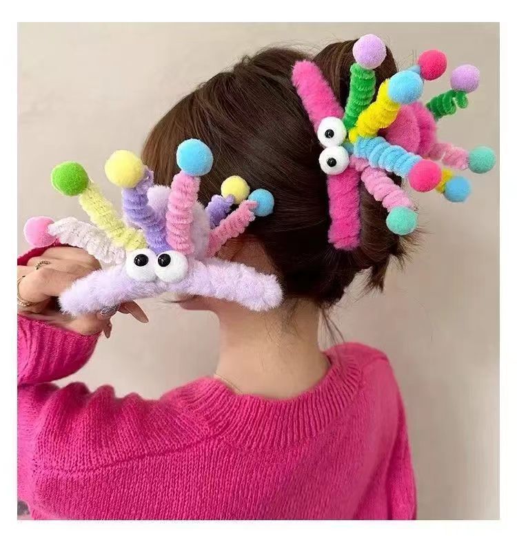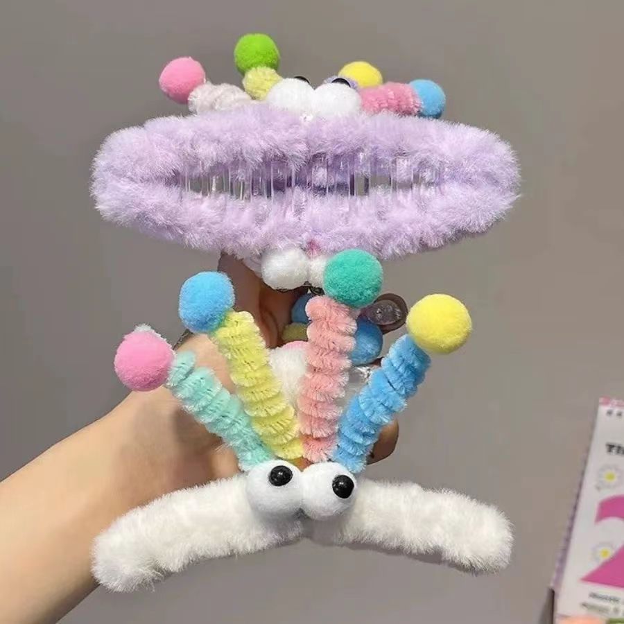 달콤한 귀여운 만화 플러시 재미있는 컬러 석탄 공 괴물 잡아 헤어 액세서리 다시 머리 상어 클립 모자 여성스토어 가기
