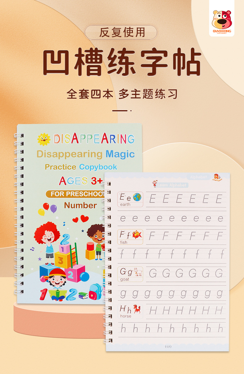 재고 크로스 보더 영어 어린이 컨트롤 펜 훈련 하드 펜 어린이 카피북 병음 디지털 그루브 서예 붙여 넣기 도매스토어 가기