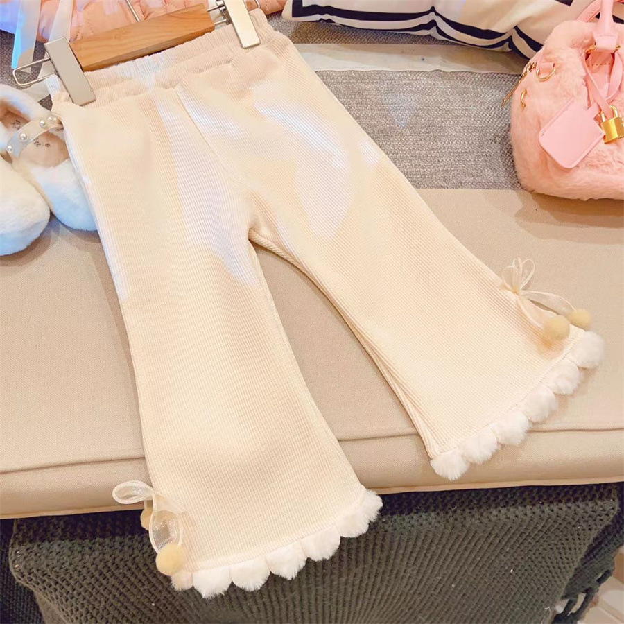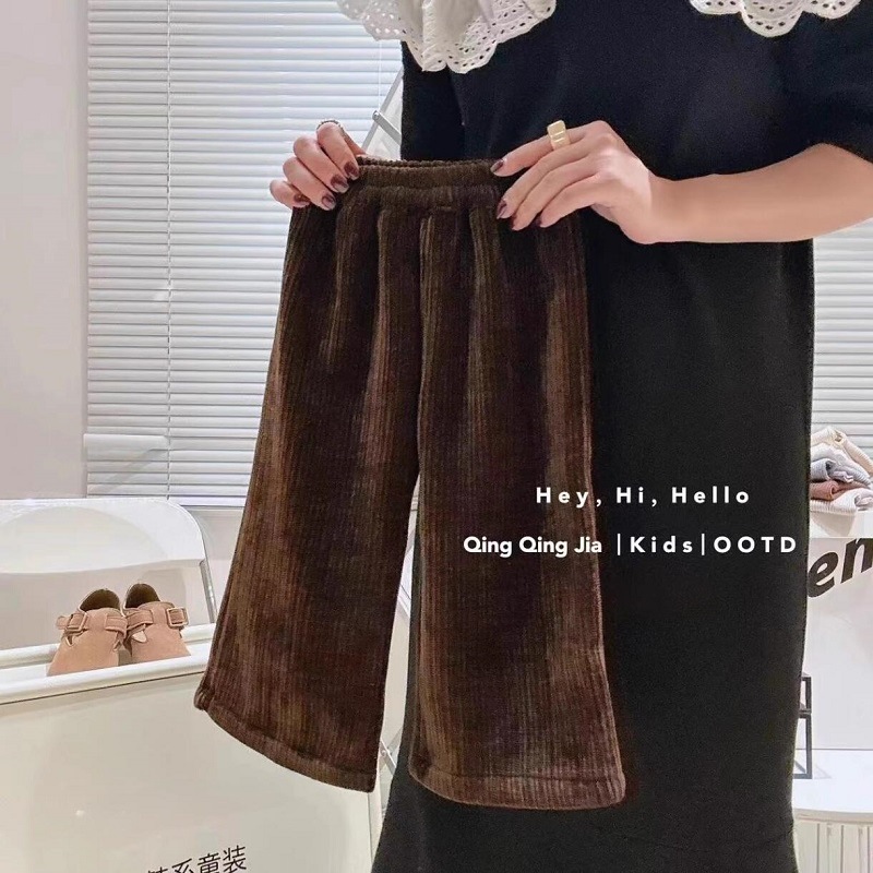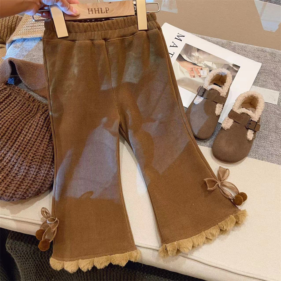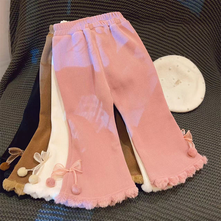 라임 소녀의 기모 두꺼운 활 와이드 레그 팬츠 2023 겨울 아기의 캐주얼 레이스 스트레이트 팬츠 가을과 겨울스토어 가기