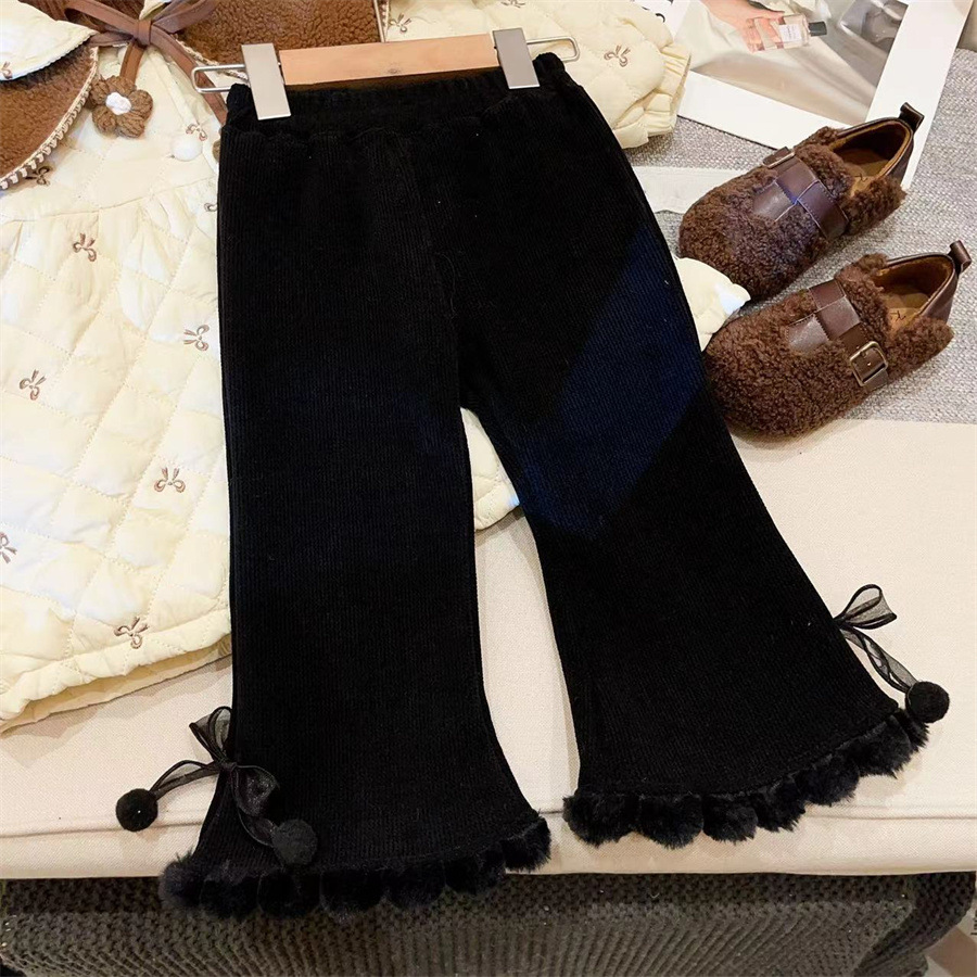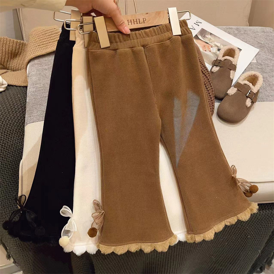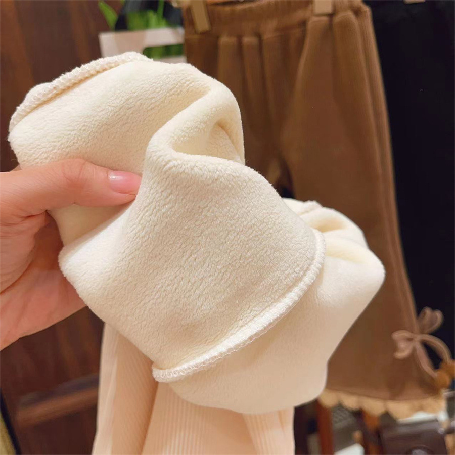 라임 소녀의 기모 두꺼운 활 와이드 레그 팬츠 2023 겨울 아기의 캐주얼 레이스 스트레이트 팬츠 가을과 겨울
