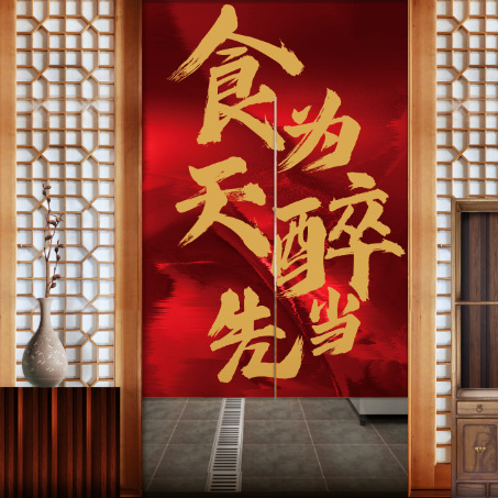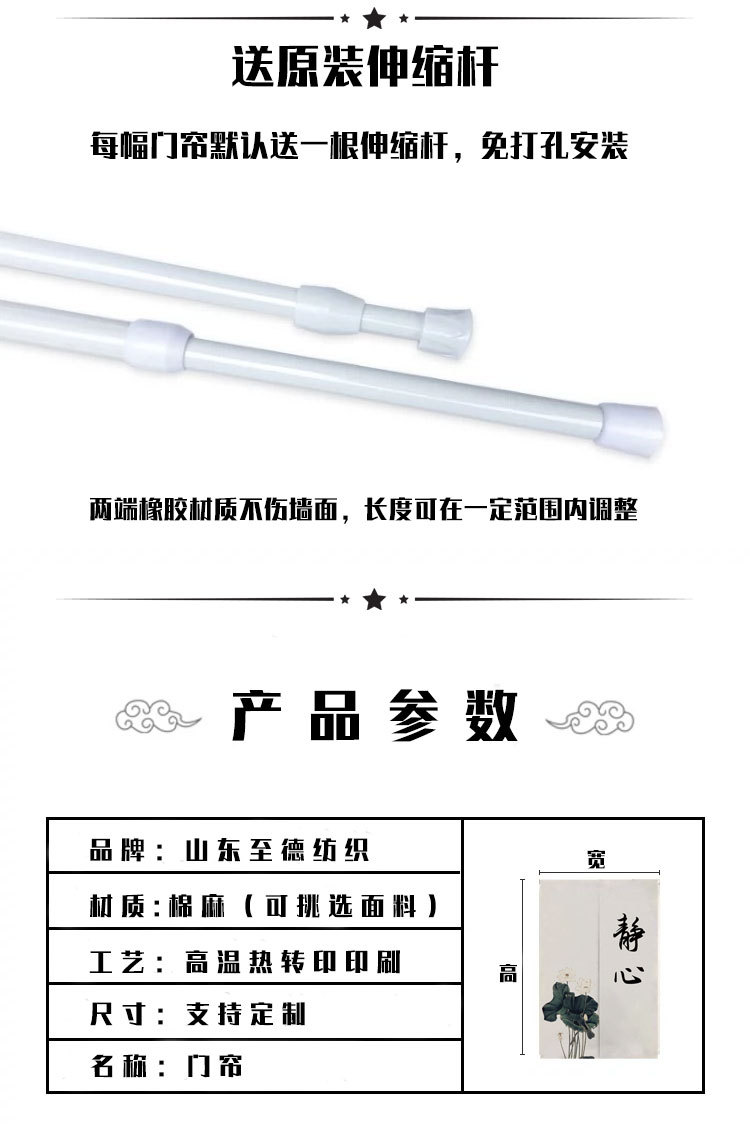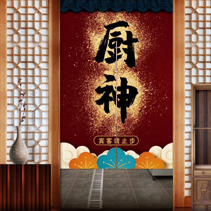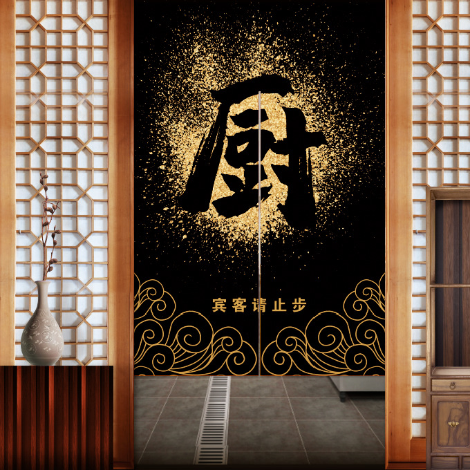 도어 커튼 만들기 주방 중국식 텍스트 아트 커튼 하프 커튼 연기 방지 구멍 없는 커튼 후면 주방 커튼스토어 가기