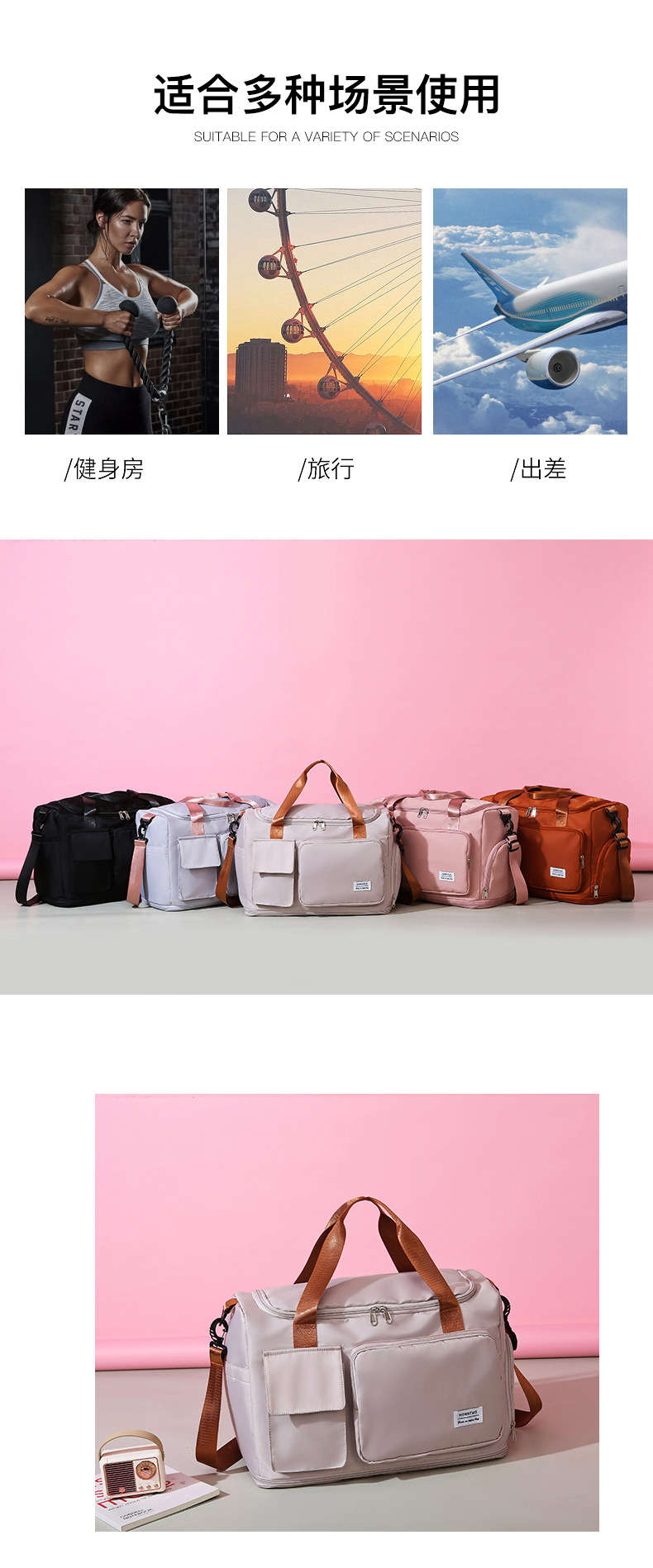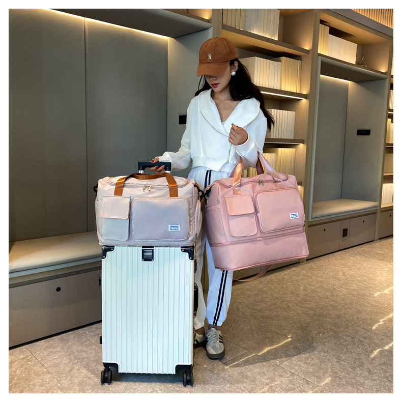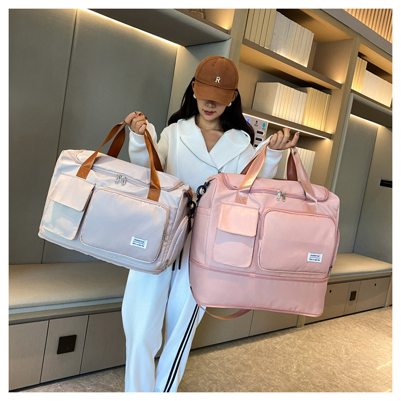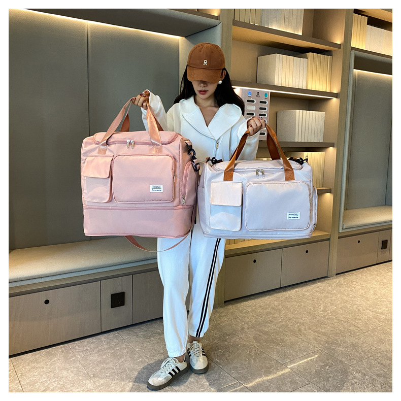 여성용 피트니스 가방, 건식 및 습식 분리, 휴대용 수하물 가방, 대용량, 싱글 숄더, 크로스바디, 확장 가능 여행 가방, 내마모성 및 방수