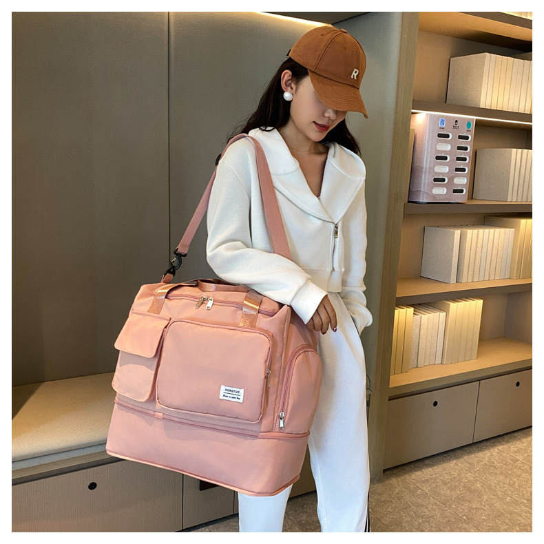 여성용 피트니스 가방, 건식 및 습식 분리, 휴대용 수하물 가방, 대용량, 싱글 숄더, 크로스바디, 확장 가능 여행 가방, 내마모성 및 방수스토어 가기