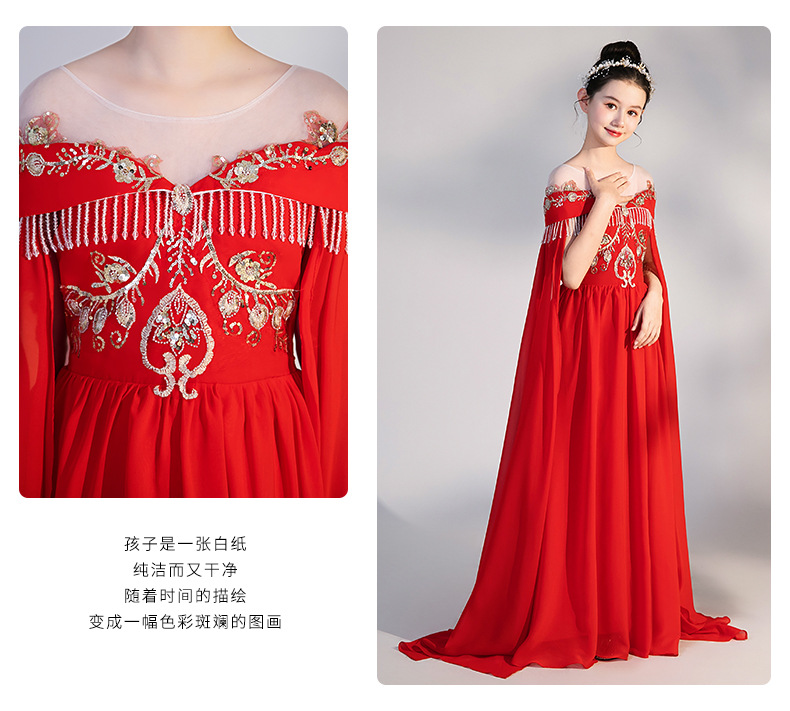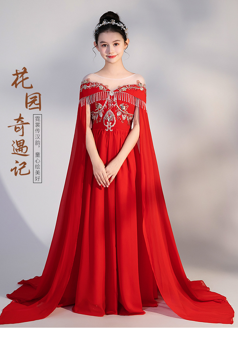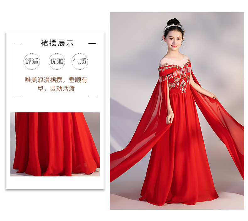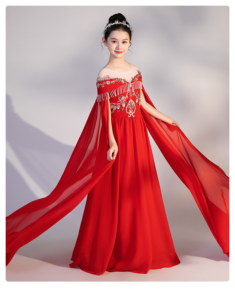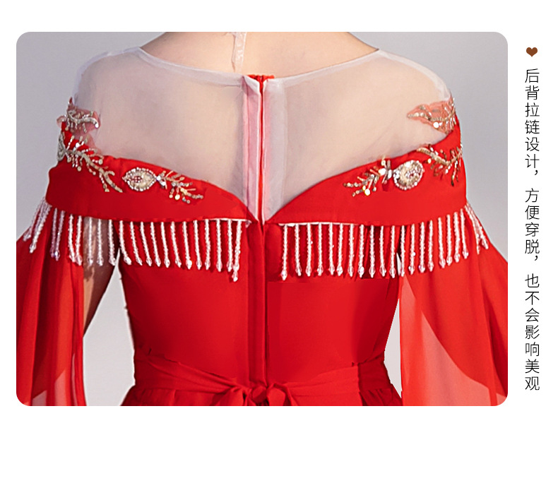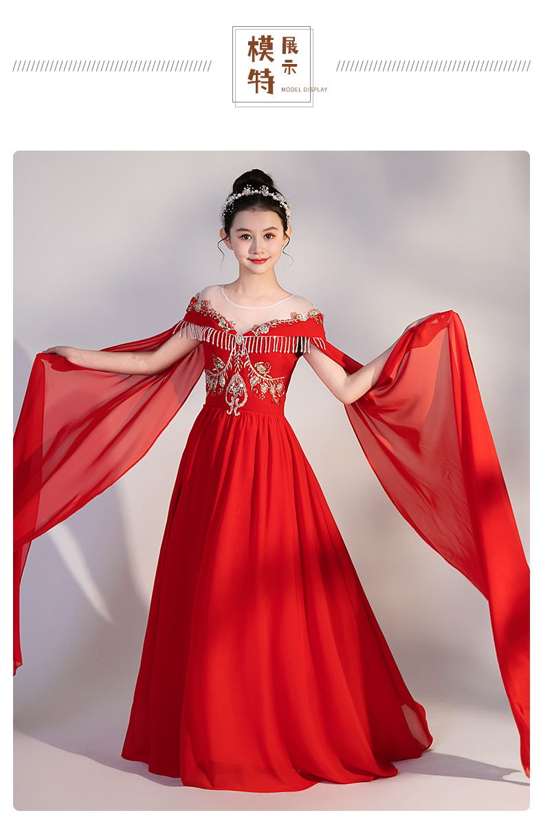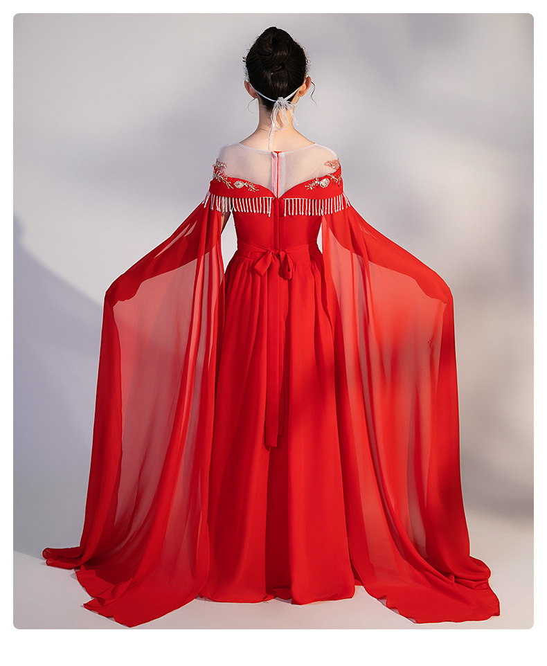 여자 Guzheng 공연 의류 2025 새로운 빨간색 국가 스타일 플러터 슬리브 민속 음악 드레스 어린 소녀 Guzheng 의류 도매