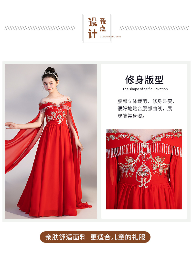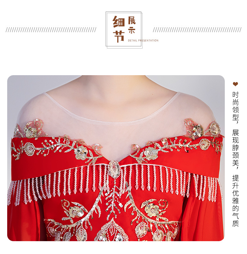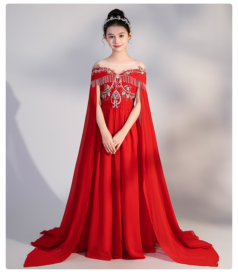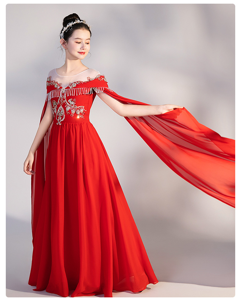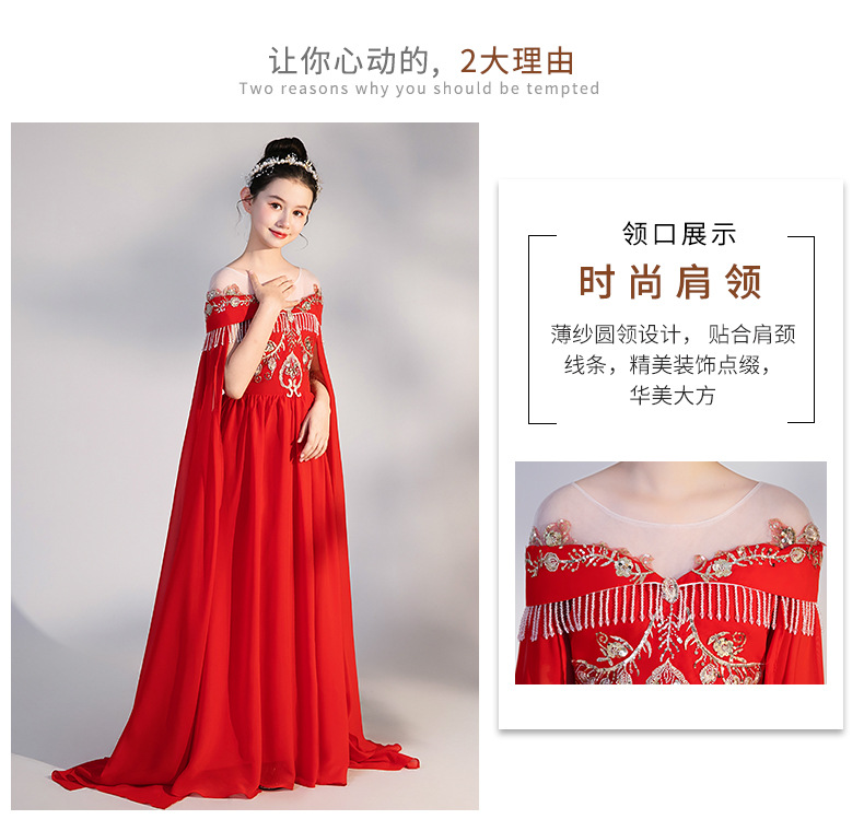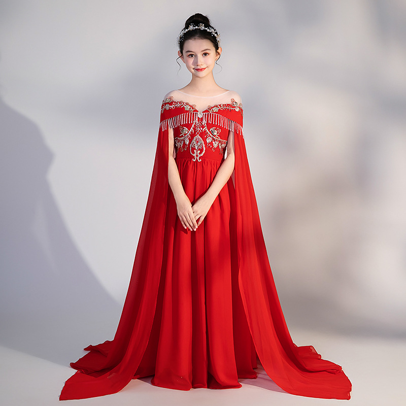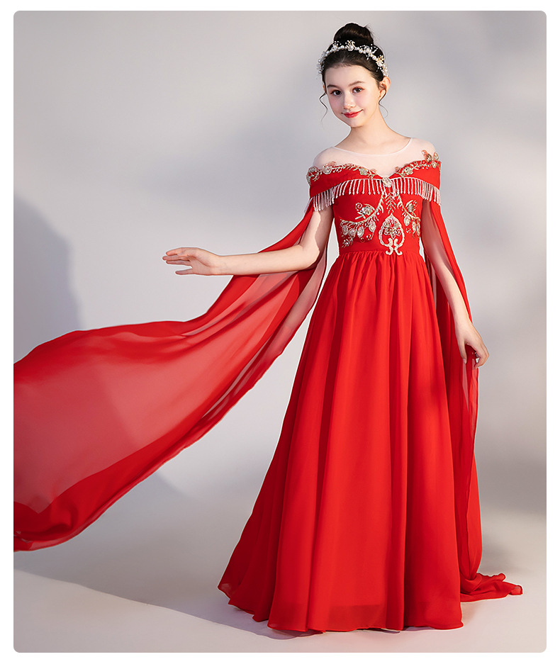 여자 Guzheng 공연 의류 2025 새로운 빨간색 국가 스타일 플러터 슬리브 민속 음악 드레스 어린 소녀 Guzheng 의류 도매