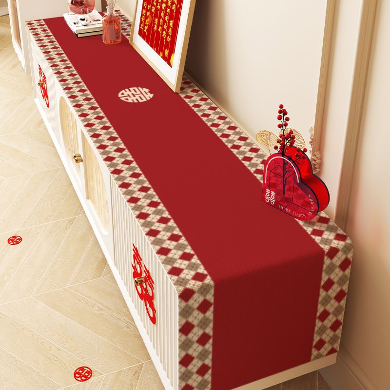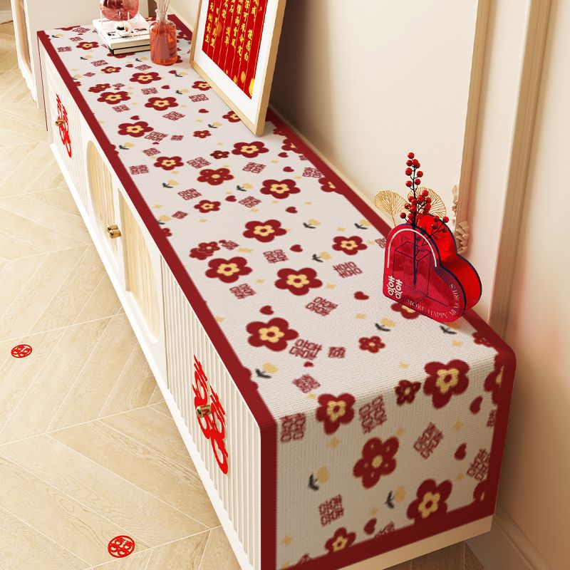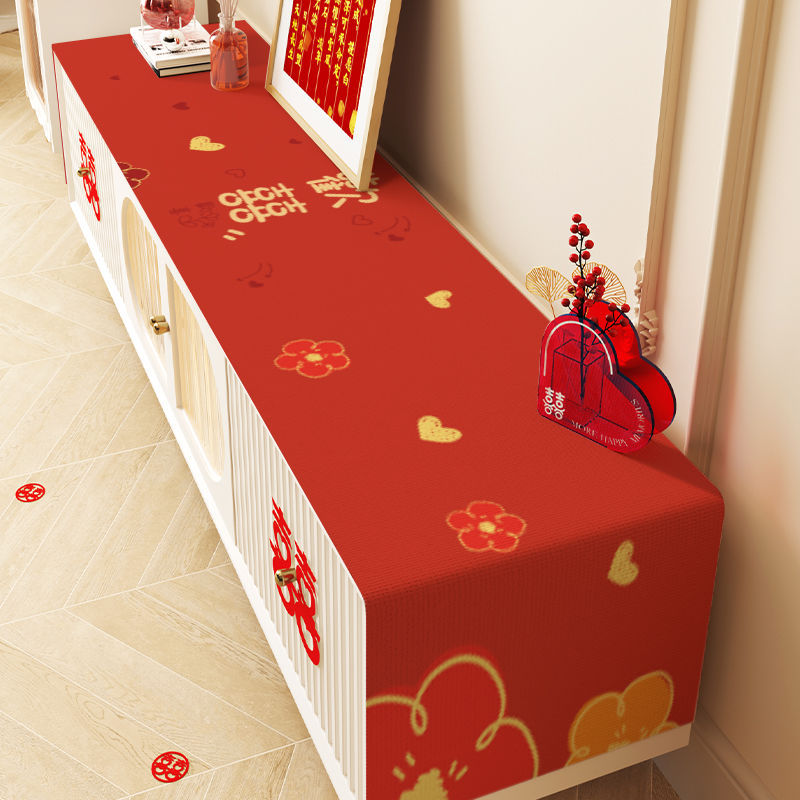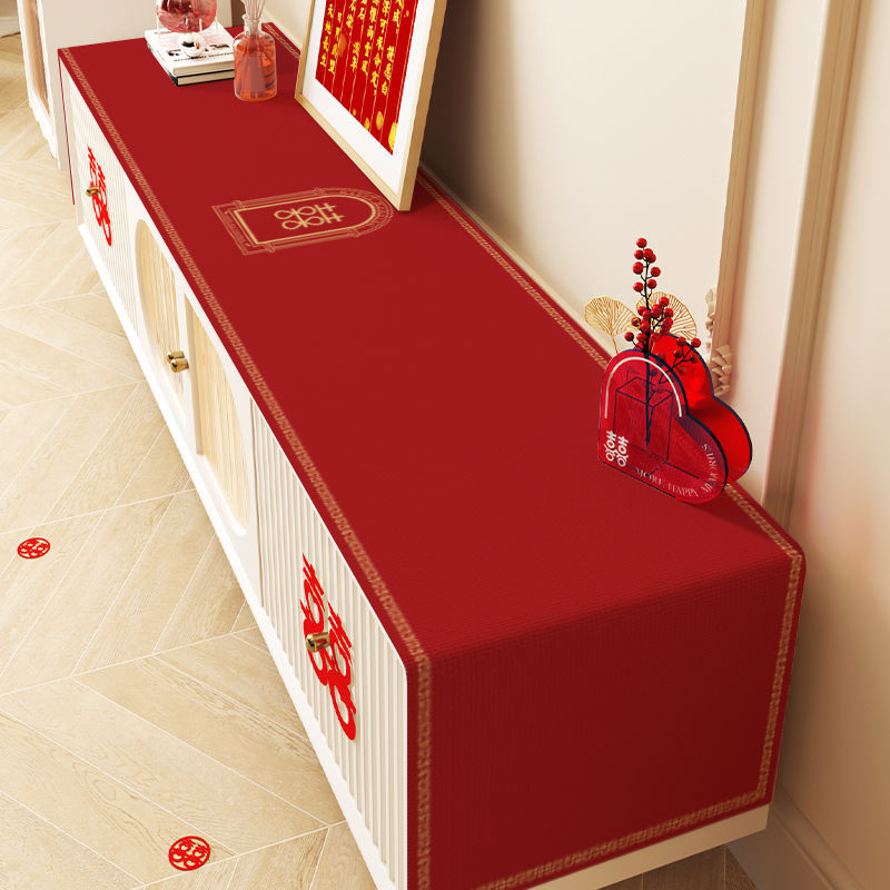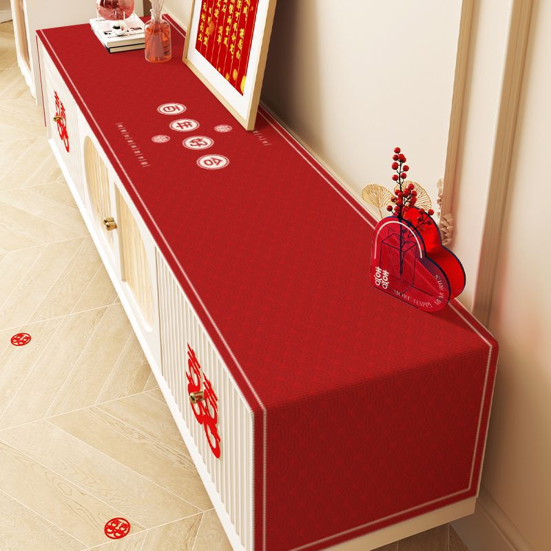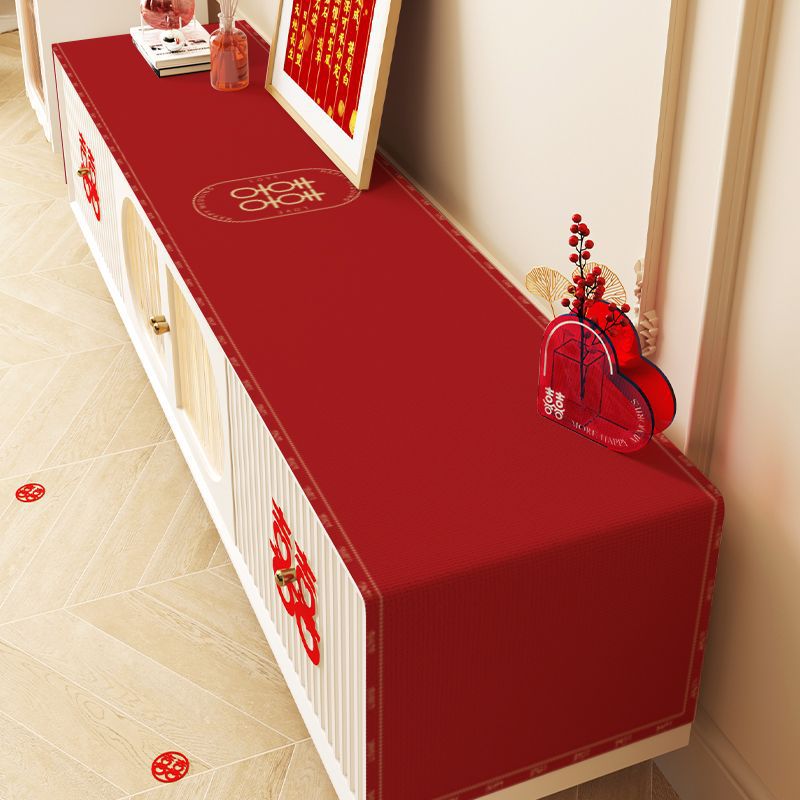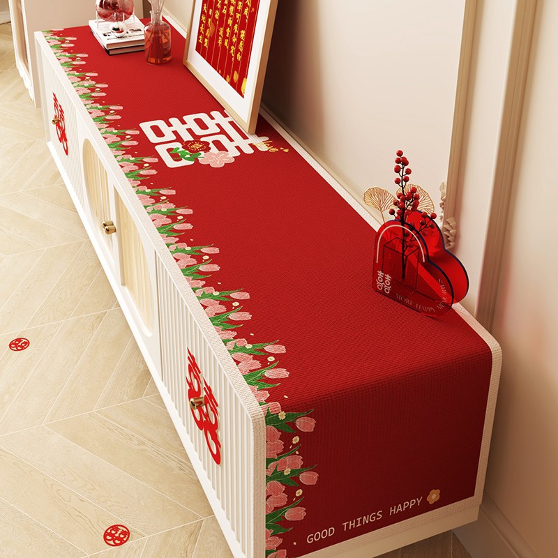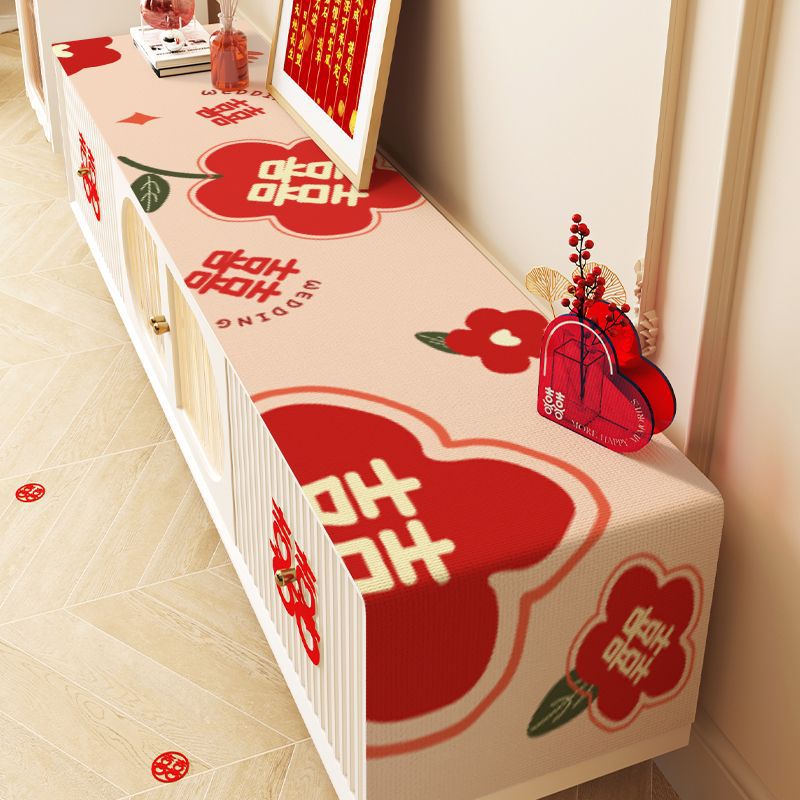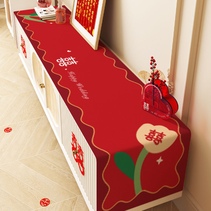 무료 배송 웨딩 TV 캐비닛 식탁보 레드 축제 웨딩 장식 긴 커버 천 수건 행복한 캐릭터 약혼 커피 테이블 식탁