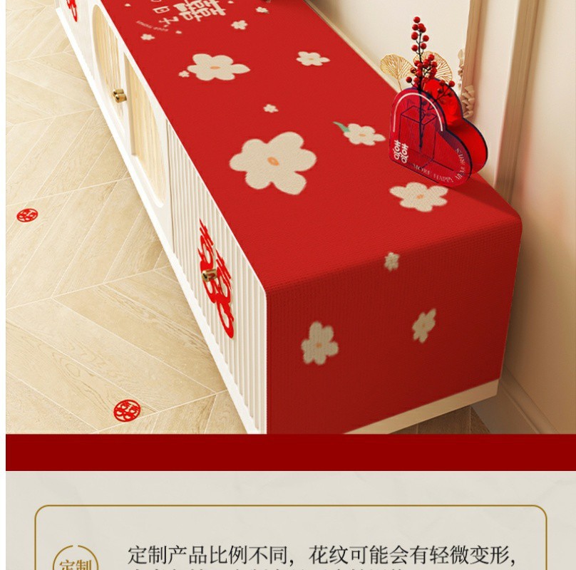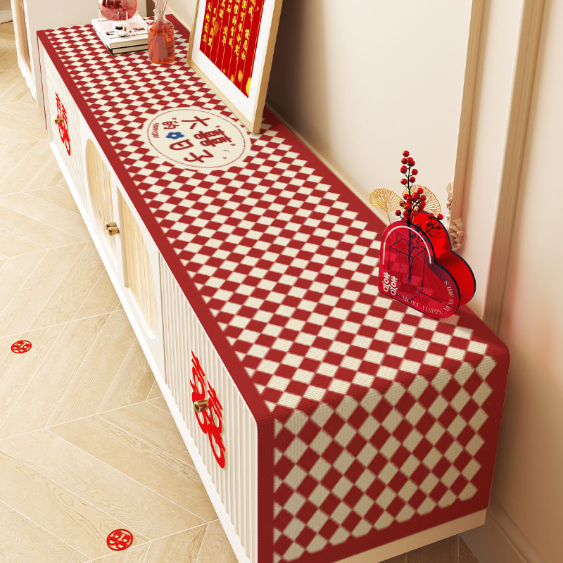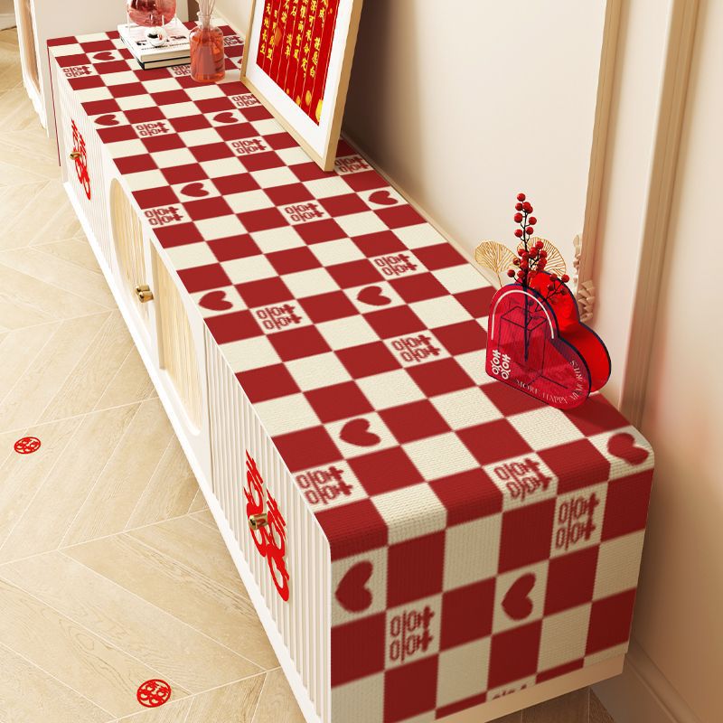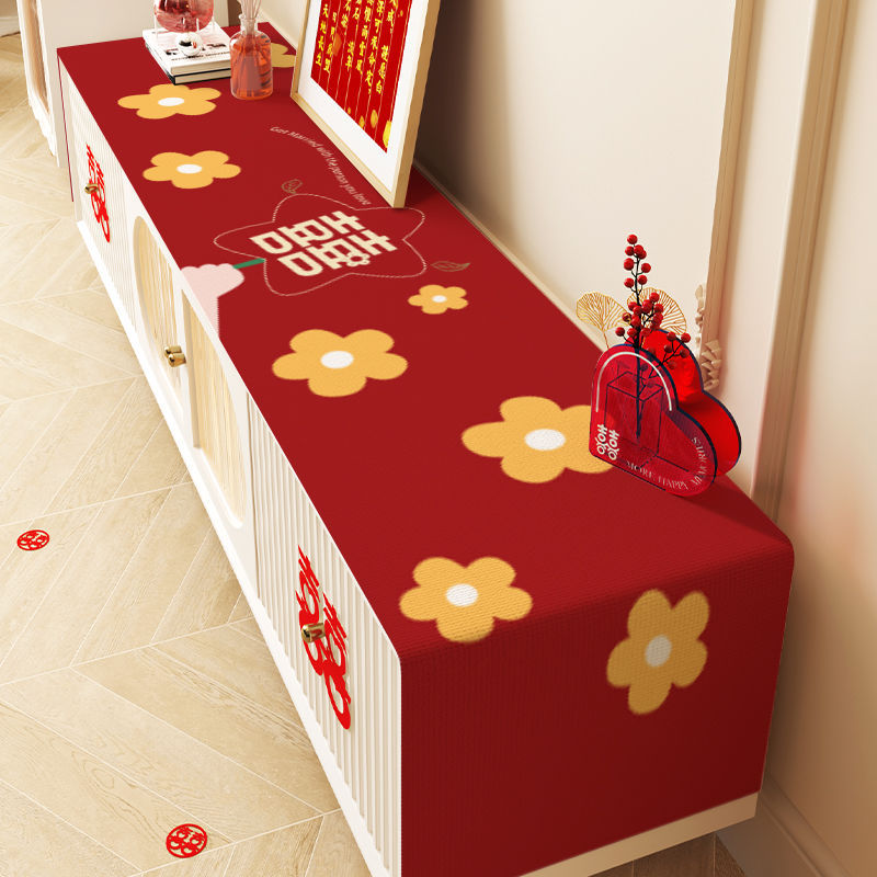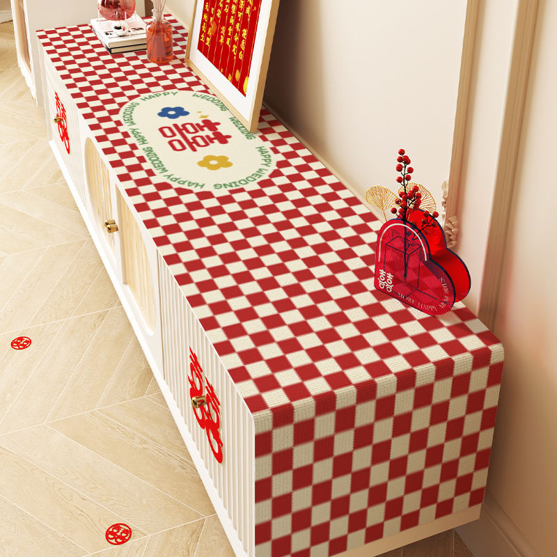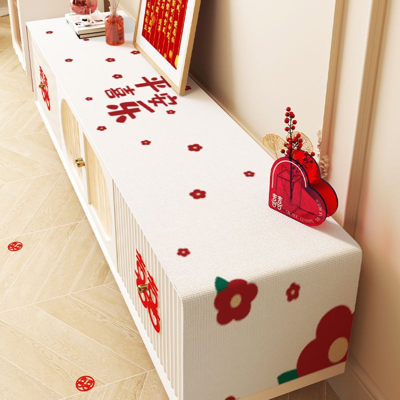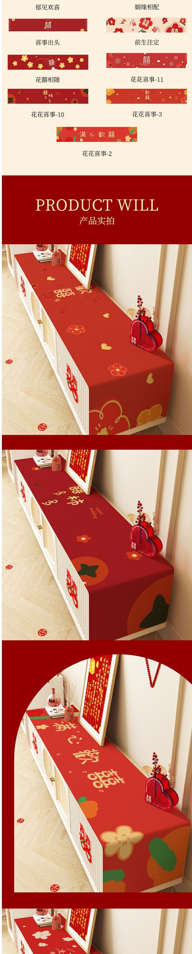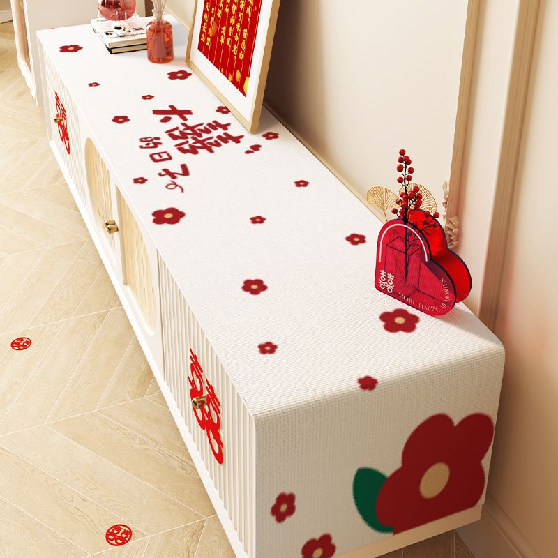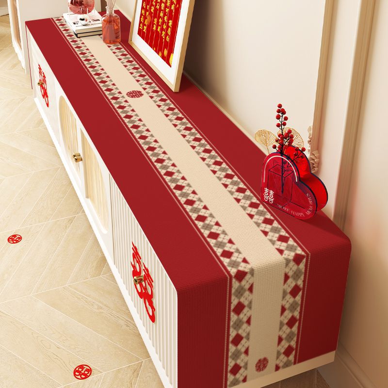 무료 배송 웨딩 TV 캐비닛 식탁보 레드 축제 웨딩 장식 긴 커버 천 수건 행복한 캐릭터 약혼 커피 테이블 식탁