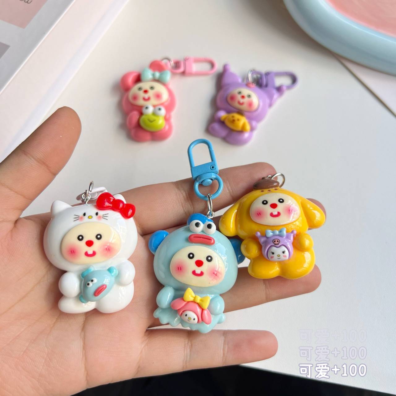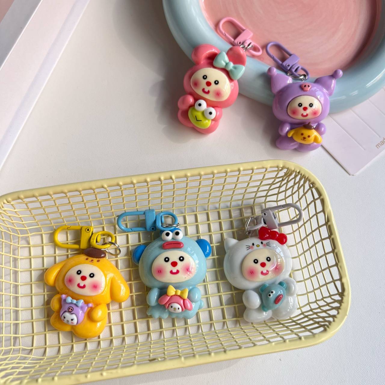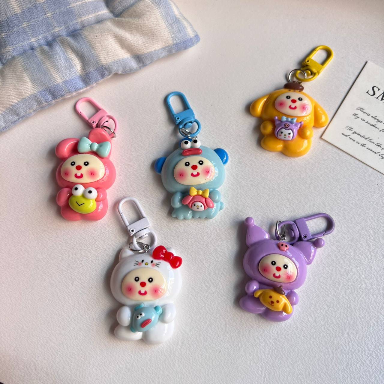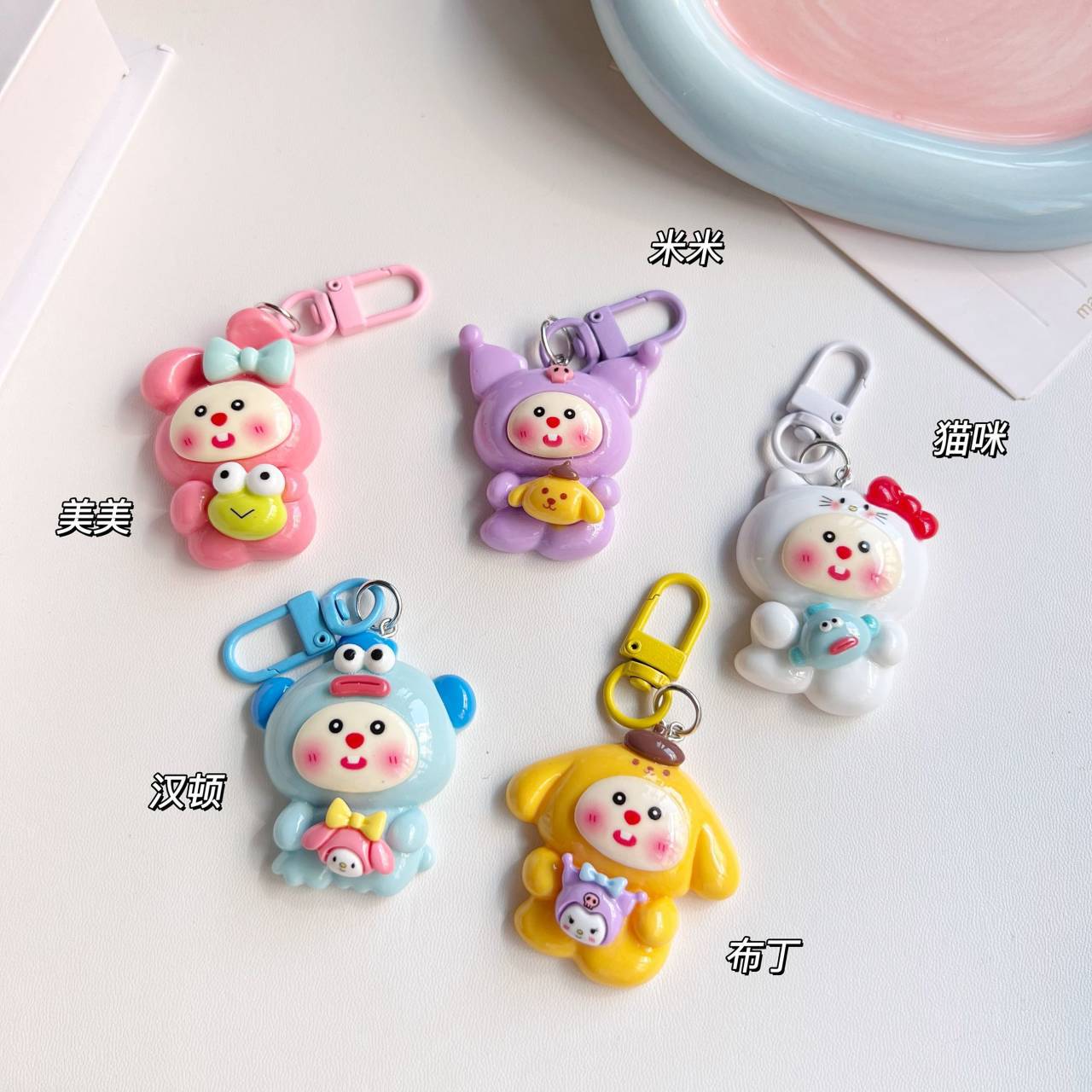 Marmot Sanrio 키 체인 소녀 하트 인 책가방 펜던트 만화 크로스 드레싱 메를로 키 펜던트