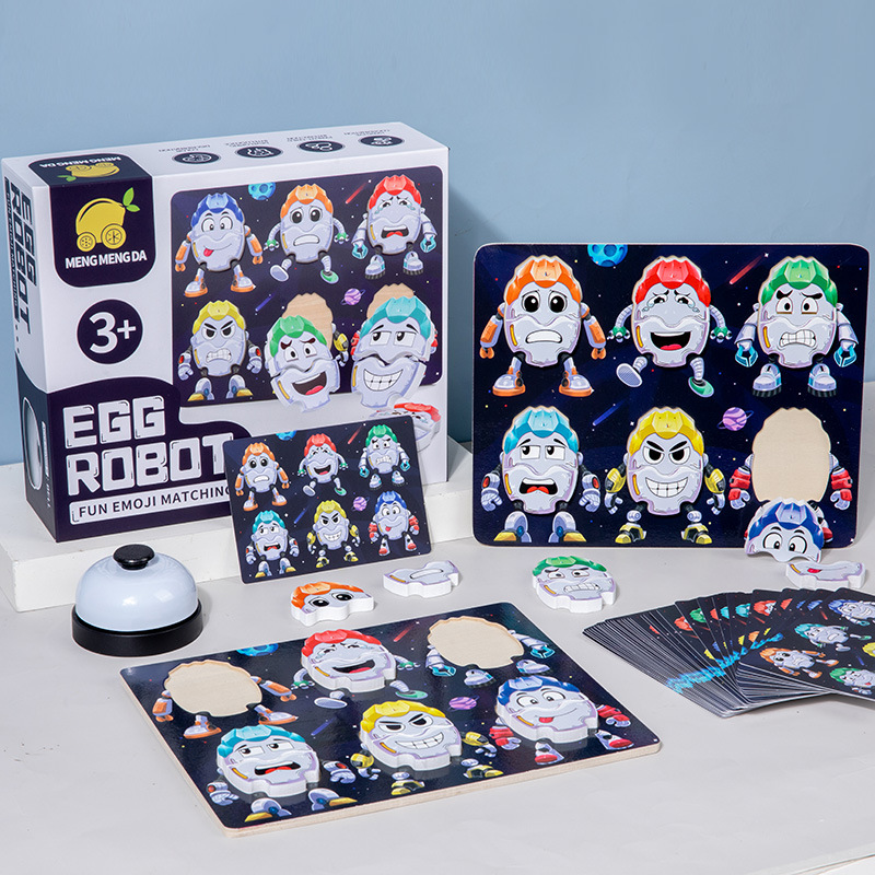 儿童蛋仔机器人表情配对互动桌面游戏早教益智木制玩具厂家批发