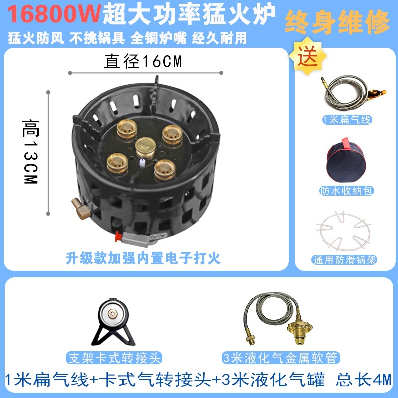 • 업그레이드 전자 점화 블랙 파이브 플랫 카드 + 4 m 액화 가스 인터페이스 3 개의 금속 파이프 총 길이
