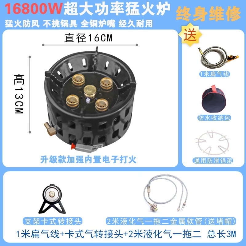 • 업그레이드 전자 점화 블랙 파이브 플랫 카드 + 2 m 액화 가스 인터페이스 3 개의 금속 파이프 총 길이
