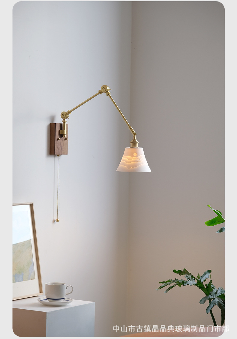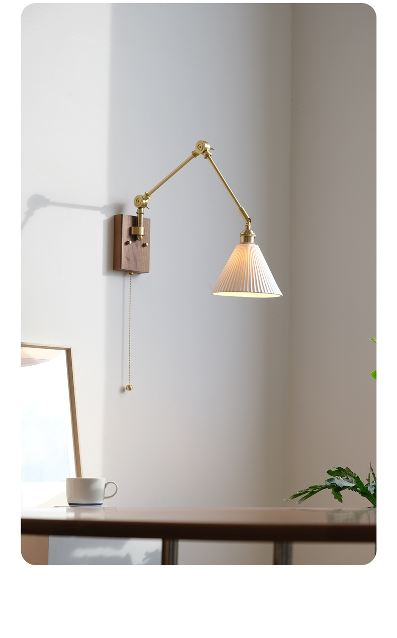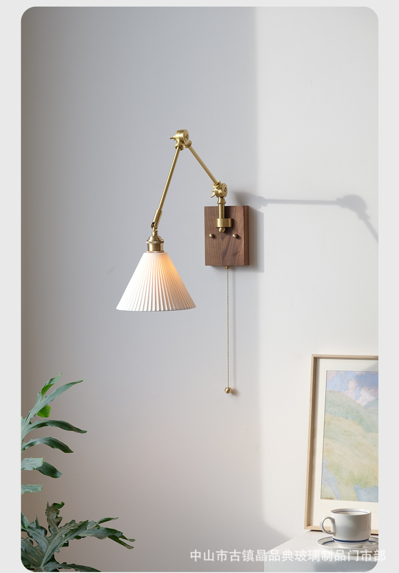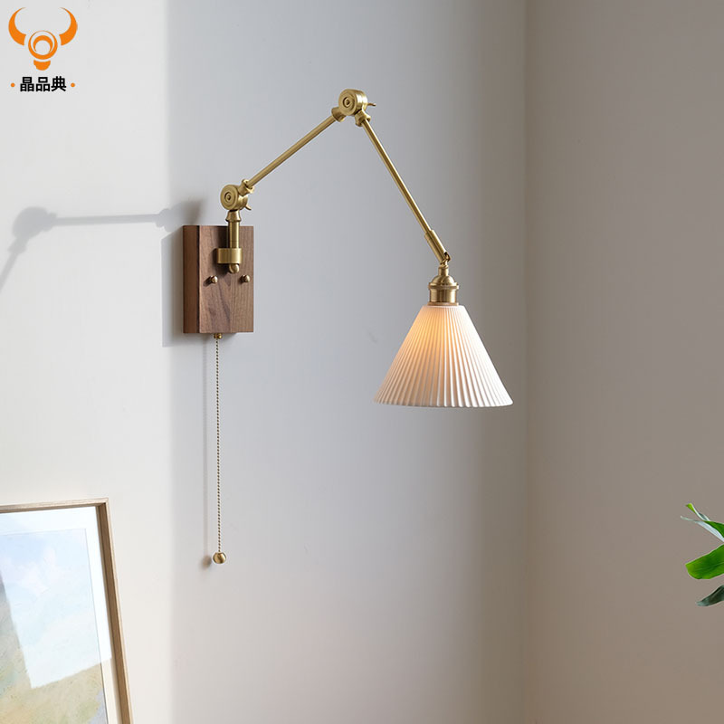 일본 스타일 복고풍 창조적 인 세라믹 호두 벽 램프 북유럽 간단한 연구 침실 식당 거실 황동 램프
