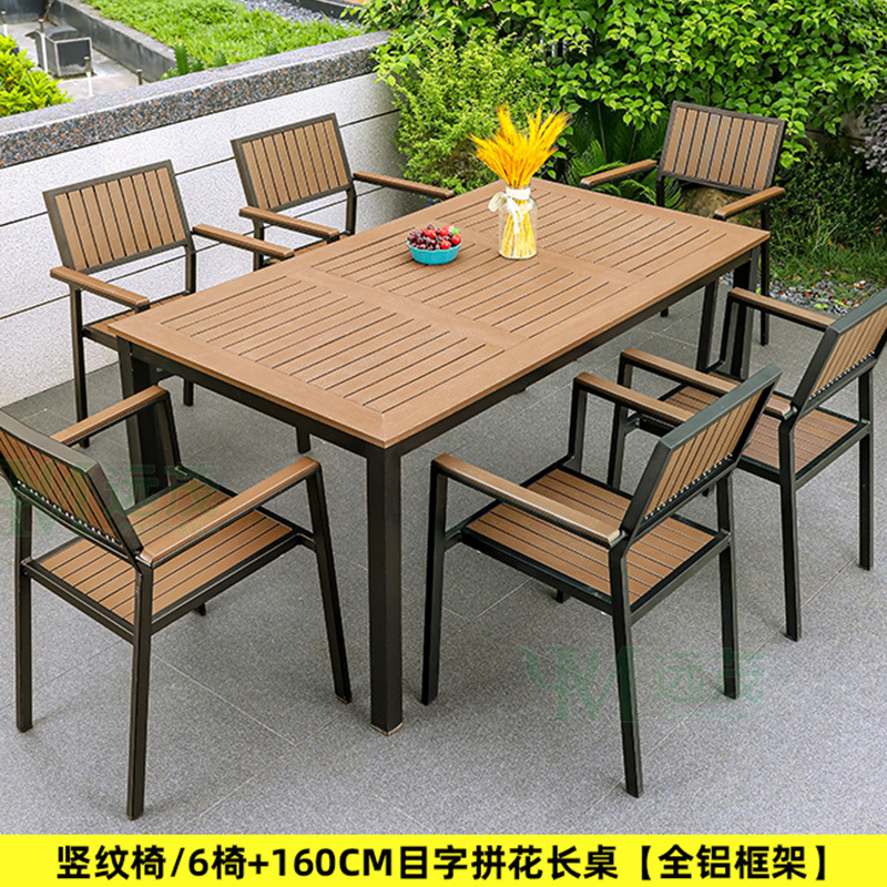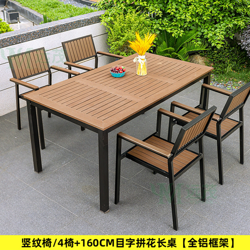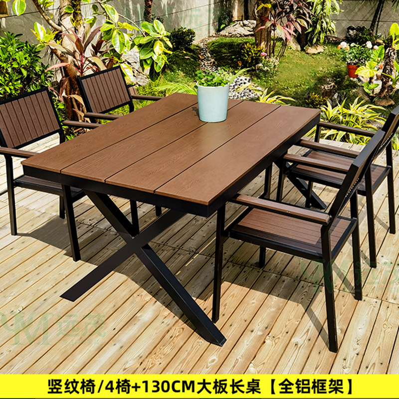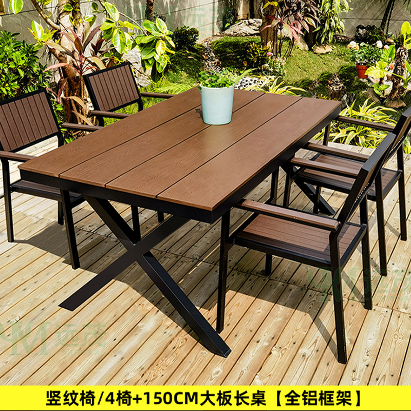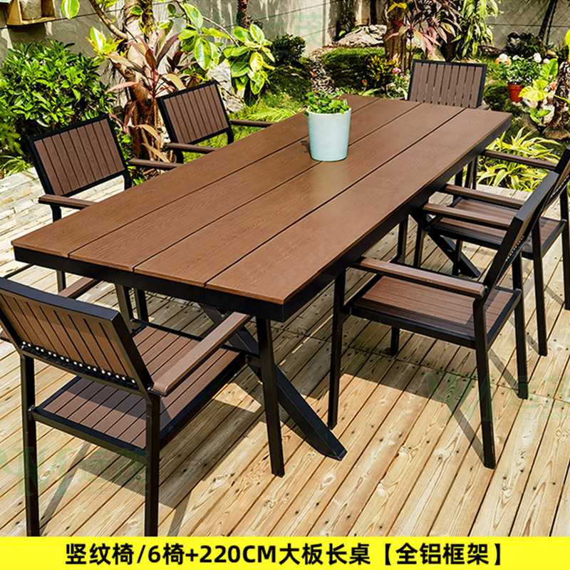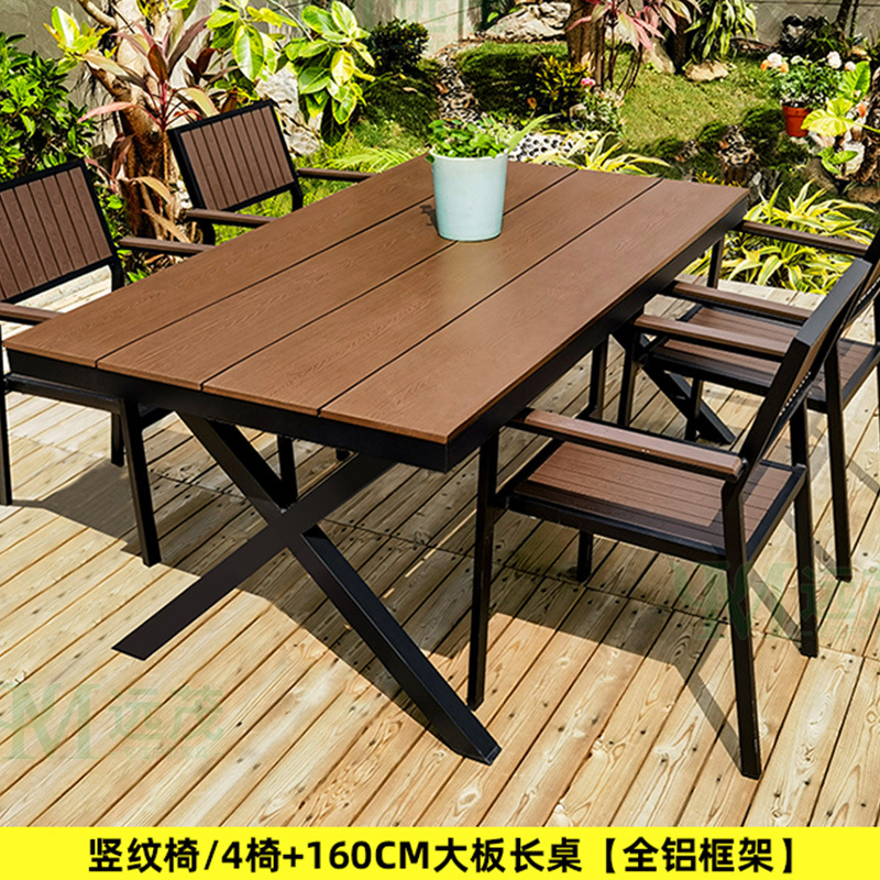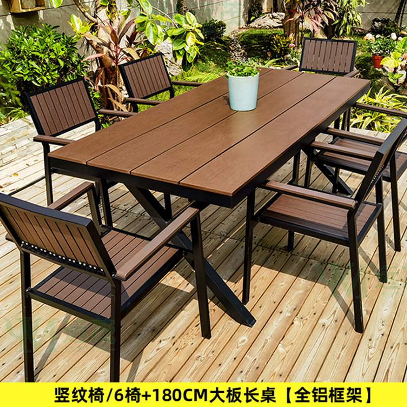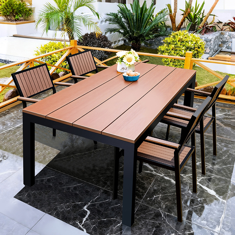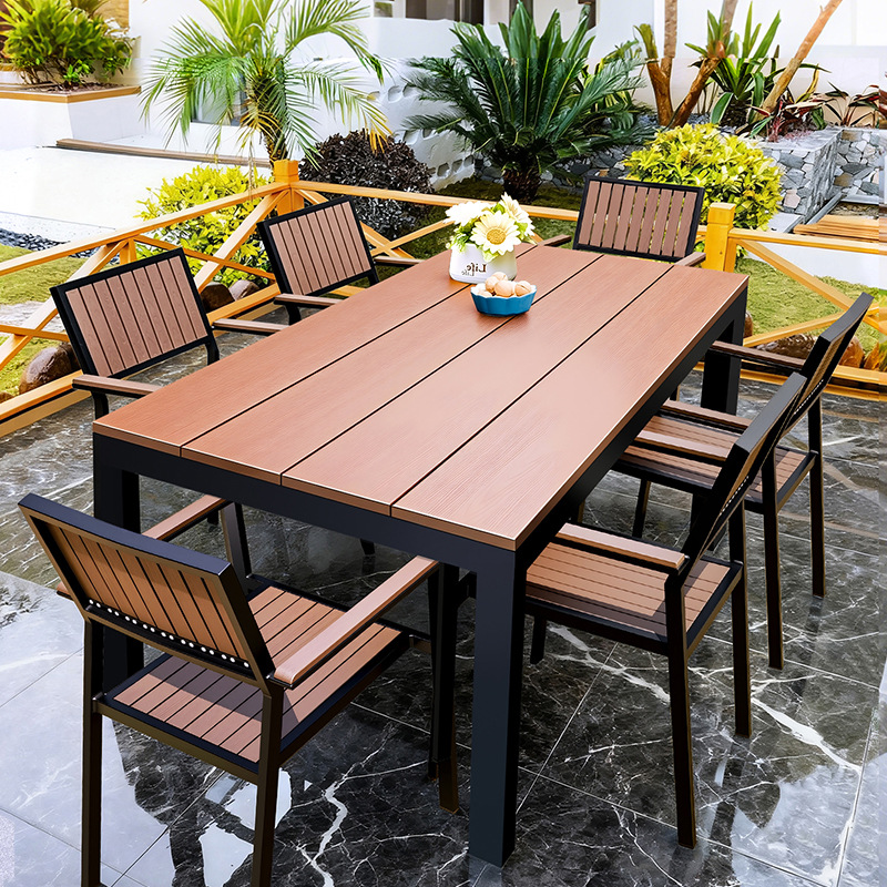 야외 안뜰 플라스틱 목재 테이블과 의자, 부식 방지 목재 알루미늄 합금 레저 빌라 야외 테라스 방수 및 자외선 차단 테이블과 의자