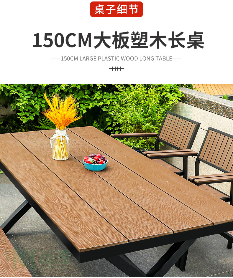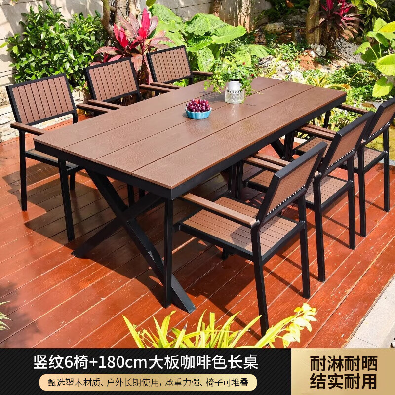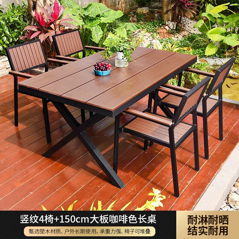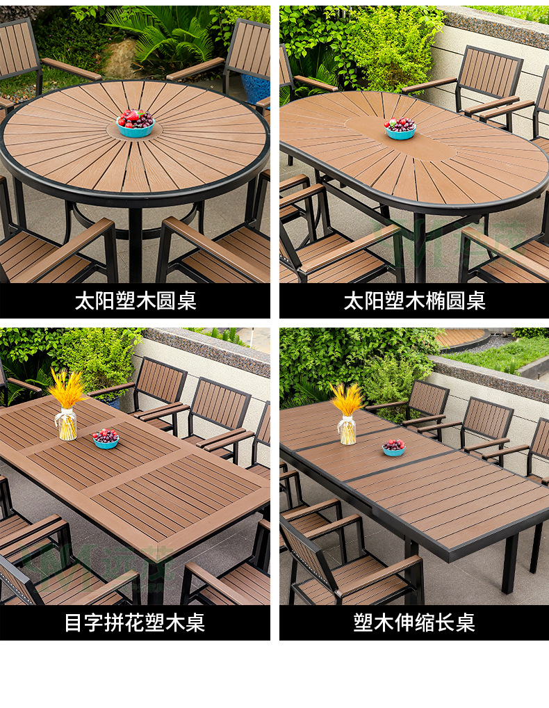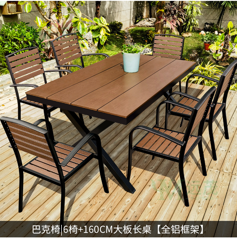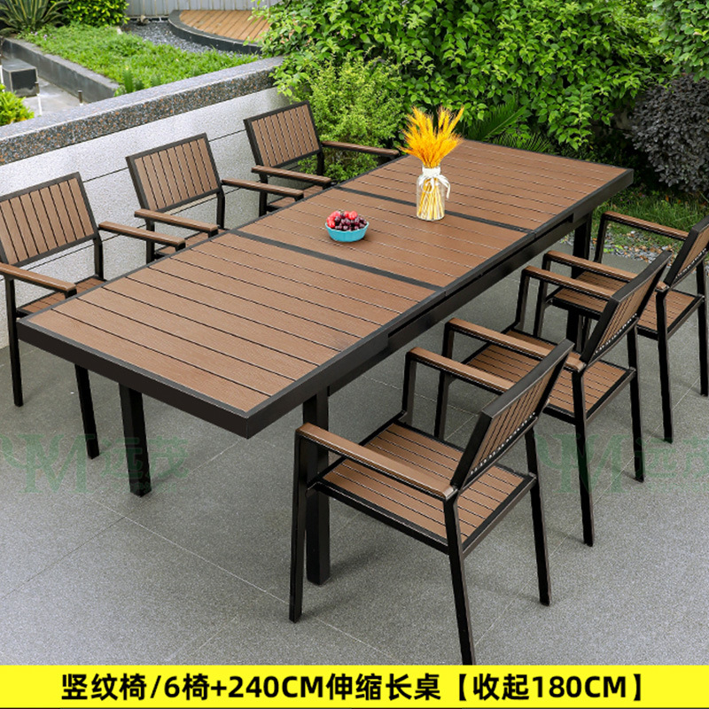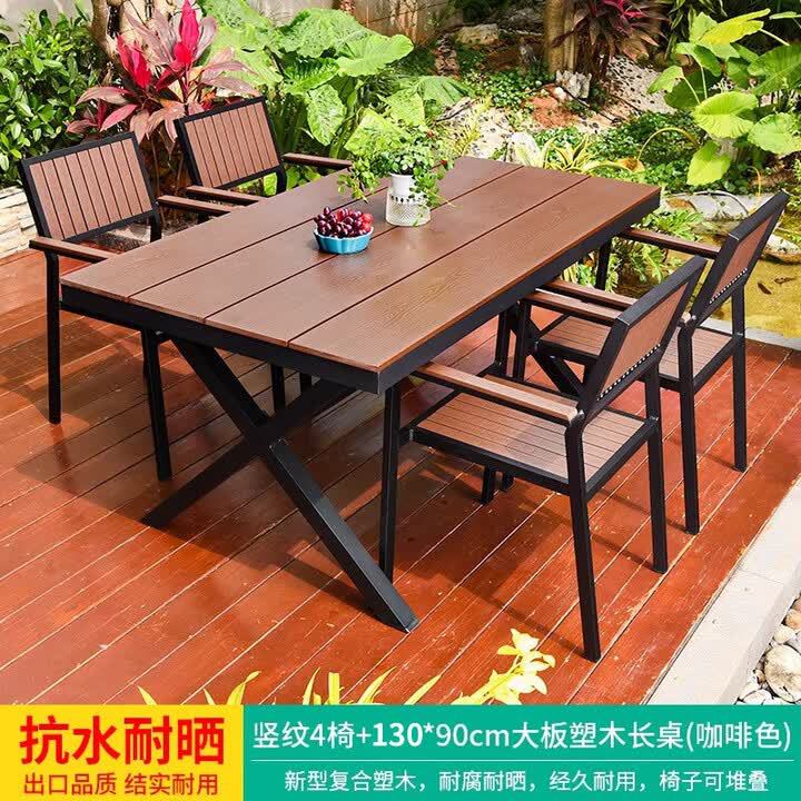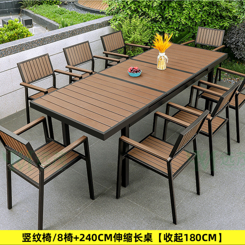 야외 안뜰 플라스틱 목재 테이블과 의자, 부식 방지 목재 알루미늄 합금 레저 빌라 야외 테라스 방수 및 자외선 차단 테이블과 의자