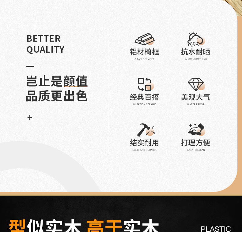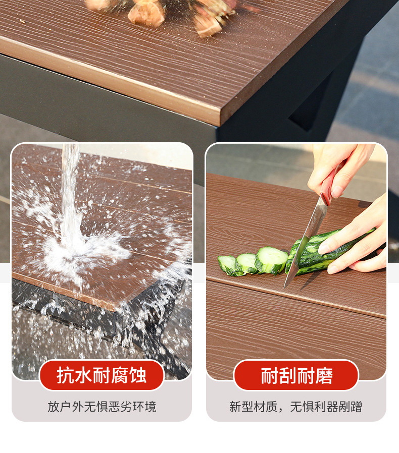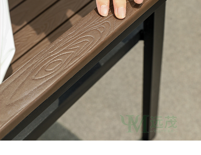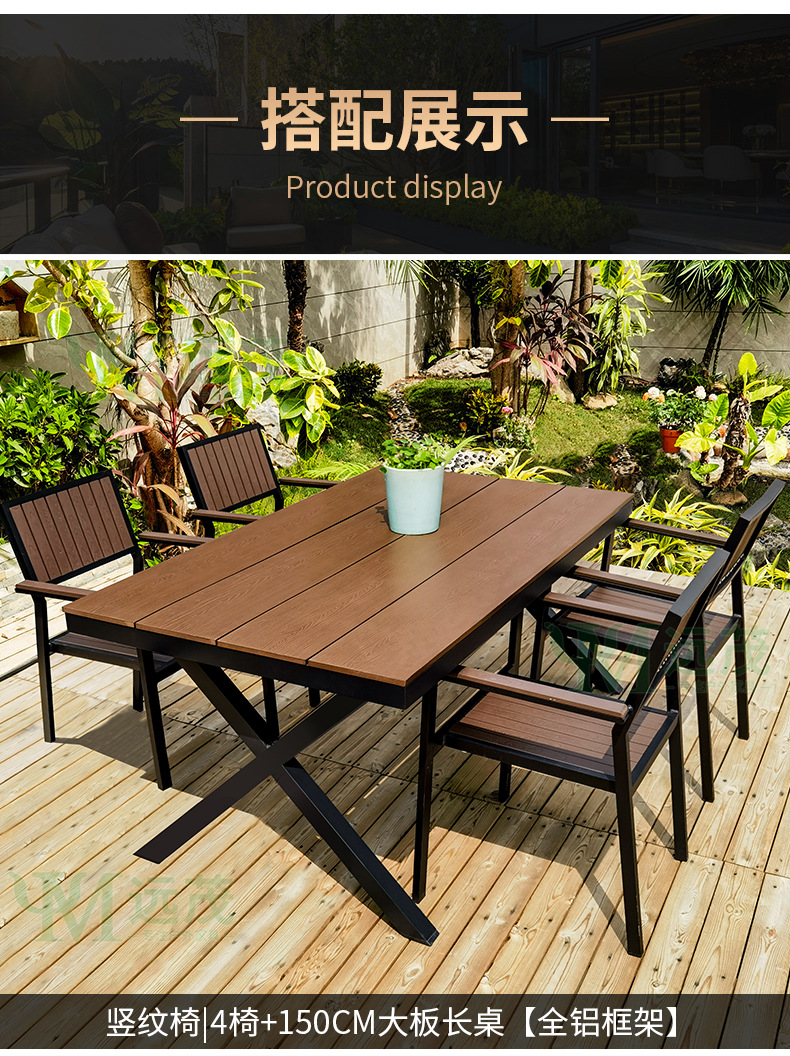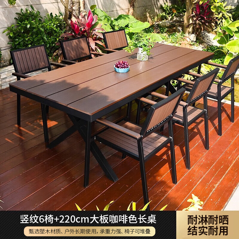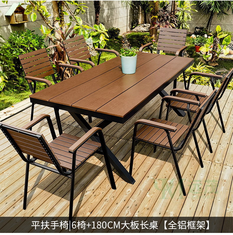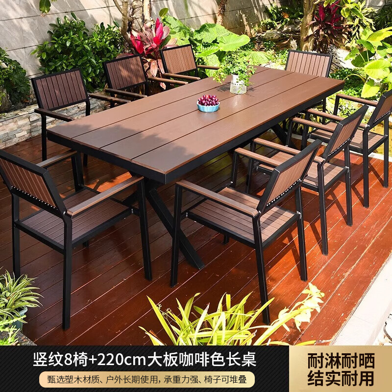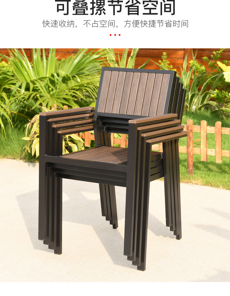 야외 안뜰 플라스틱 목재 테이블과 의자, 부식 방지 목재 알루미늄 합금 레저 빌라 야외 테라스 방수 및 자외선 차단 테이블과 의자