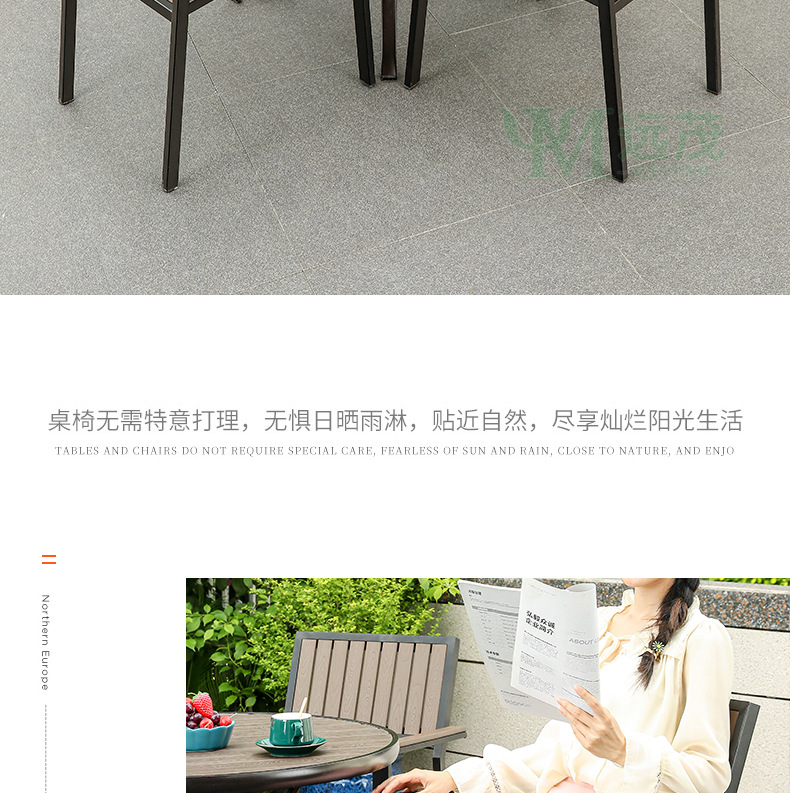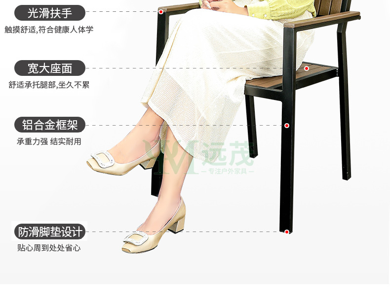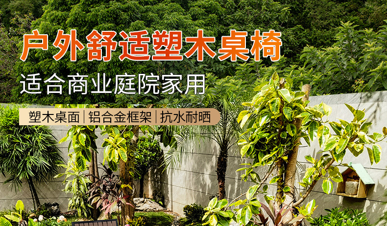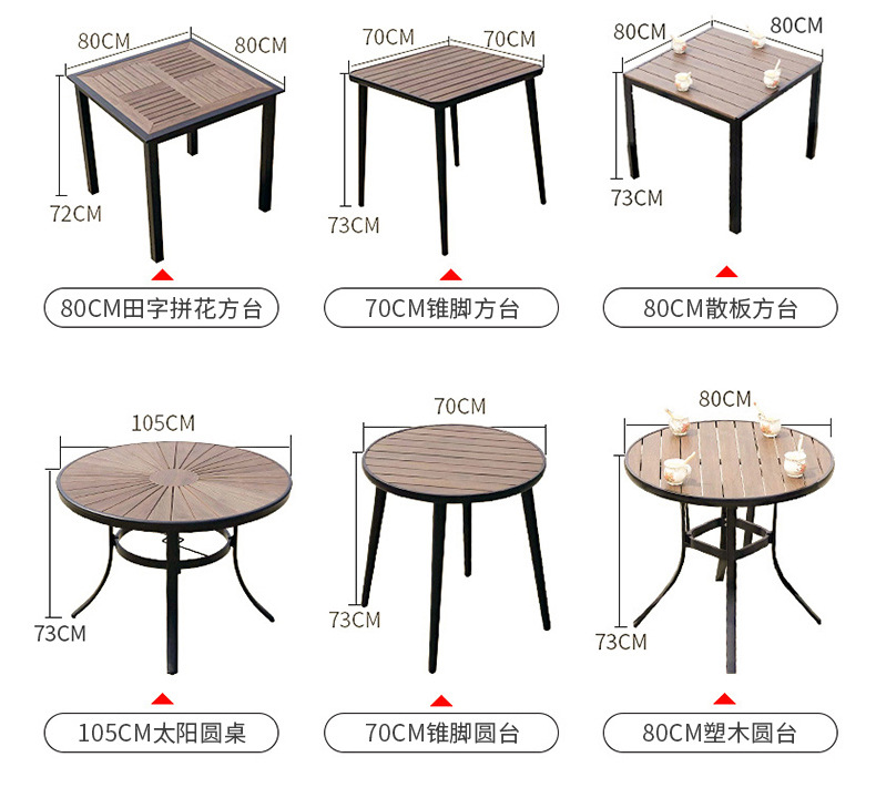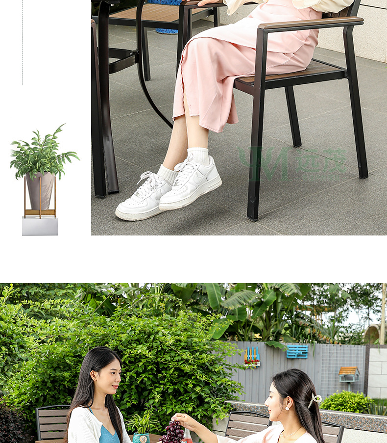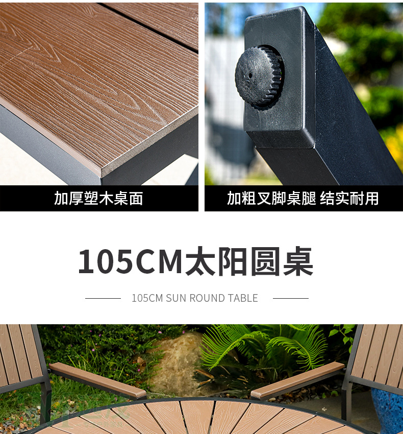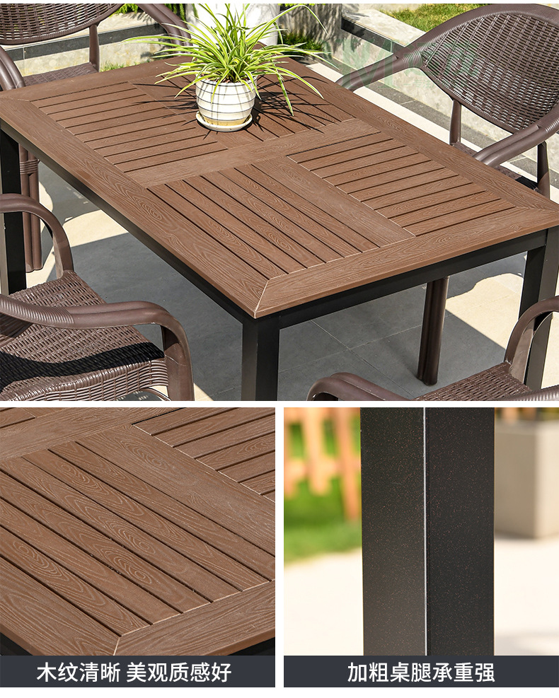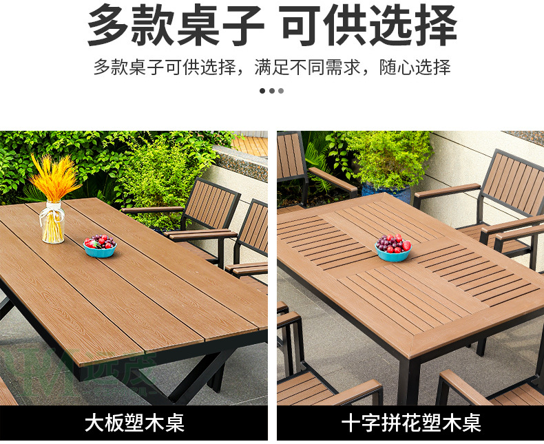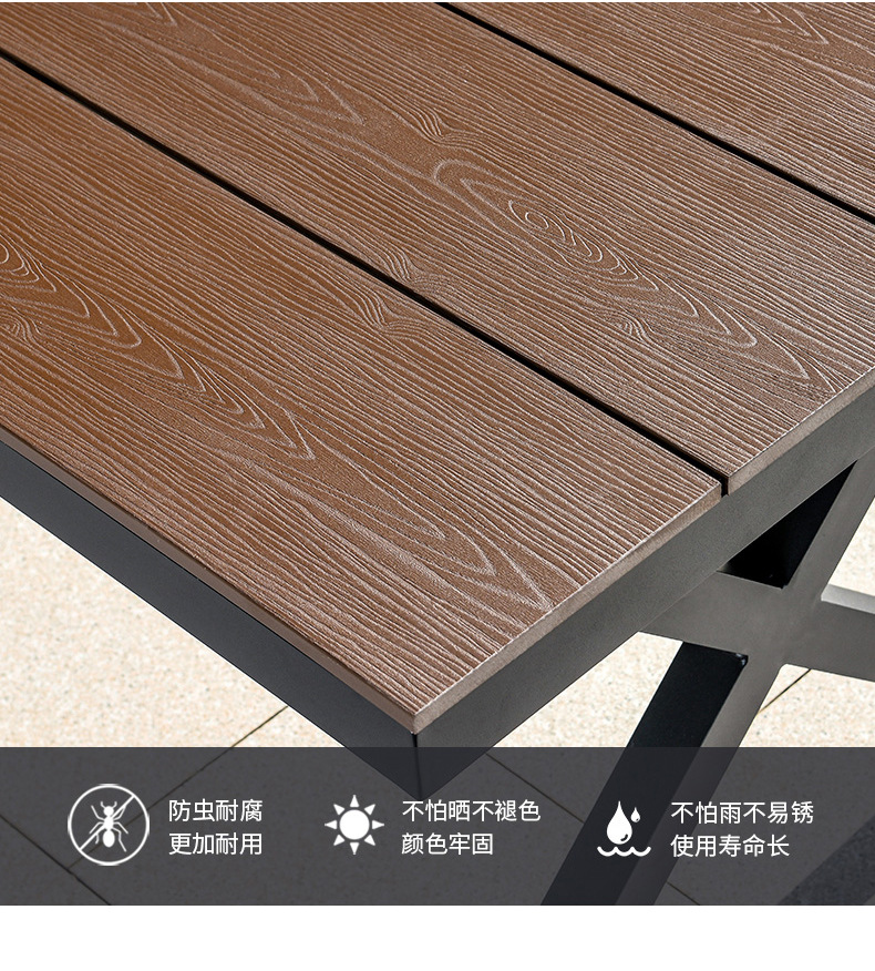 야외 안뜰 플라스틱 목재 테이블과 의자, 부식 방지 목재 알루미늄 합금 레저 빌라 야외 테라스 방수 및 자외선 차단 테이블과 의자스토어 가기