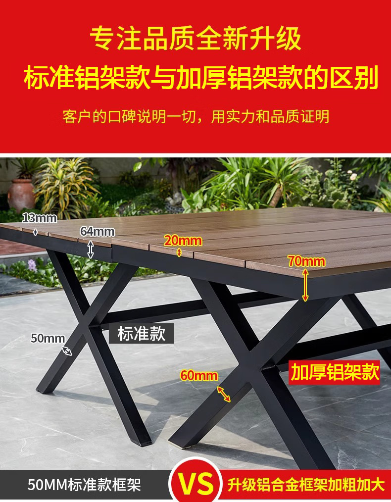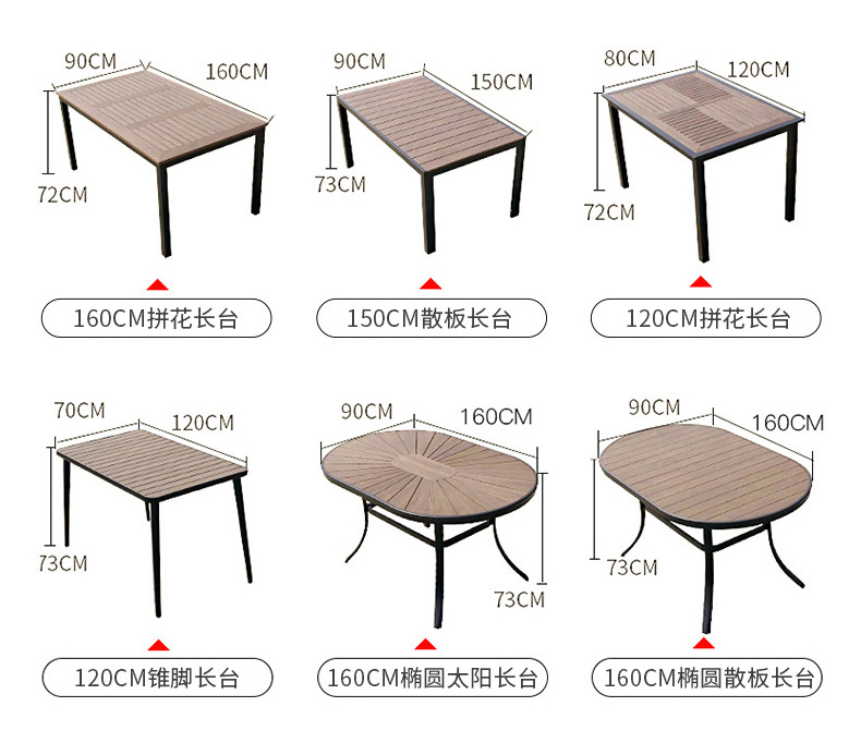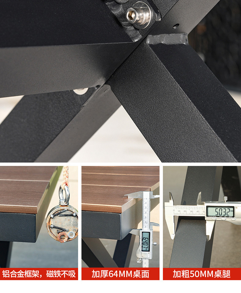 • 표준형: 의자 6개 + 160cm [직선 다리] 대형 테이블 [전체 알루미늄 프레임]