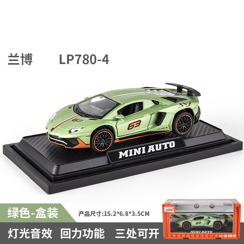 상자) 1:32 람보 lp780 스포츠카 합금 자동차 모델 소리와 빛 어린이 장난감 스포츠카 소년 어린이 선물
