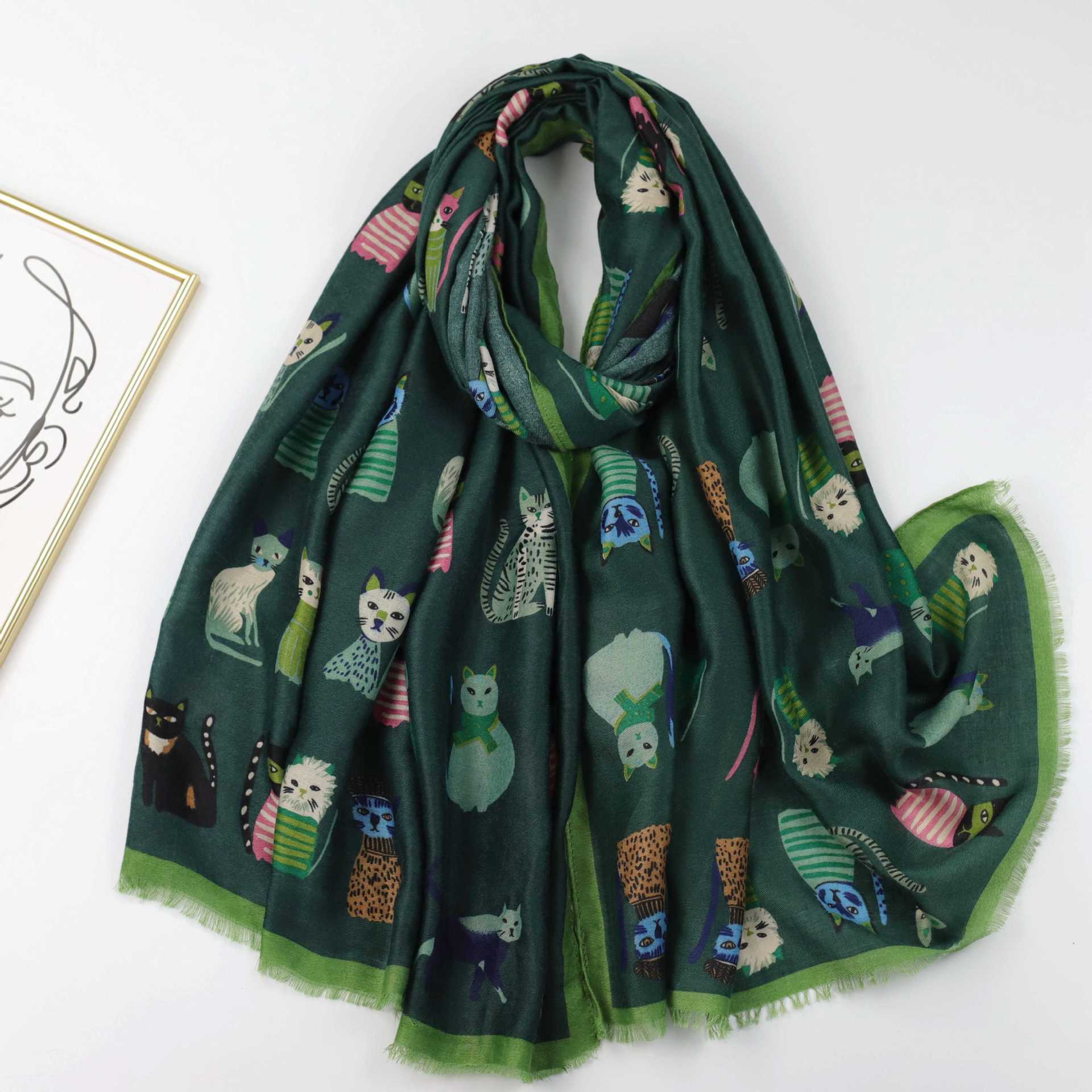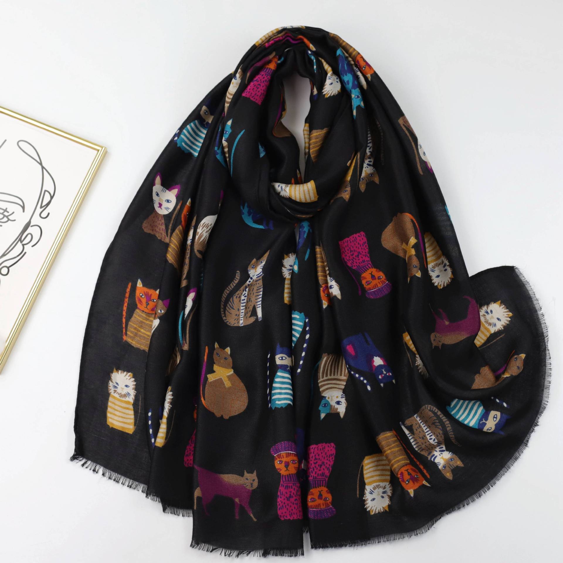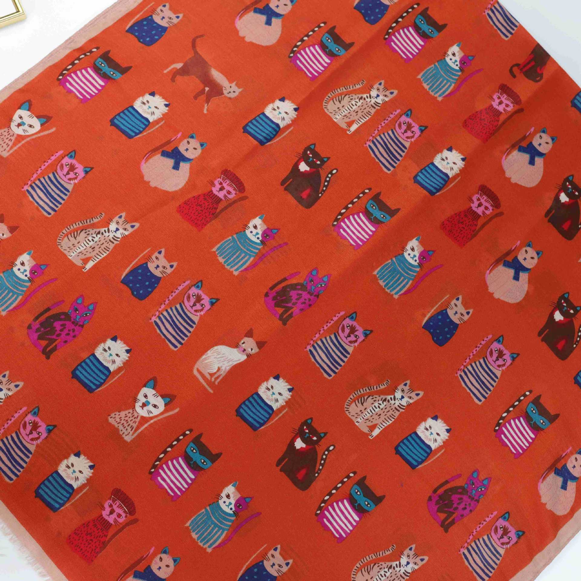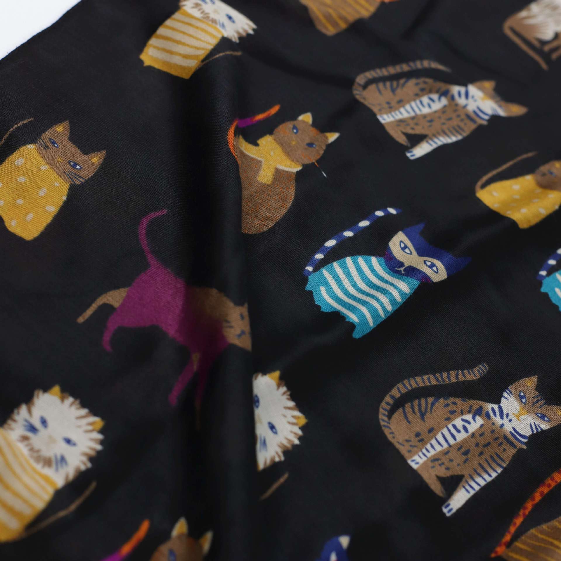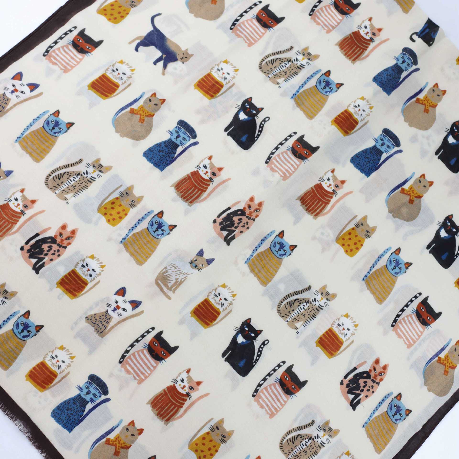 고양이의 천국 32수 새틴 패브릭 공장 직판 해외 수출 프린트 롱 스카프 여행 휴가용 자외선 차단 보온 숄