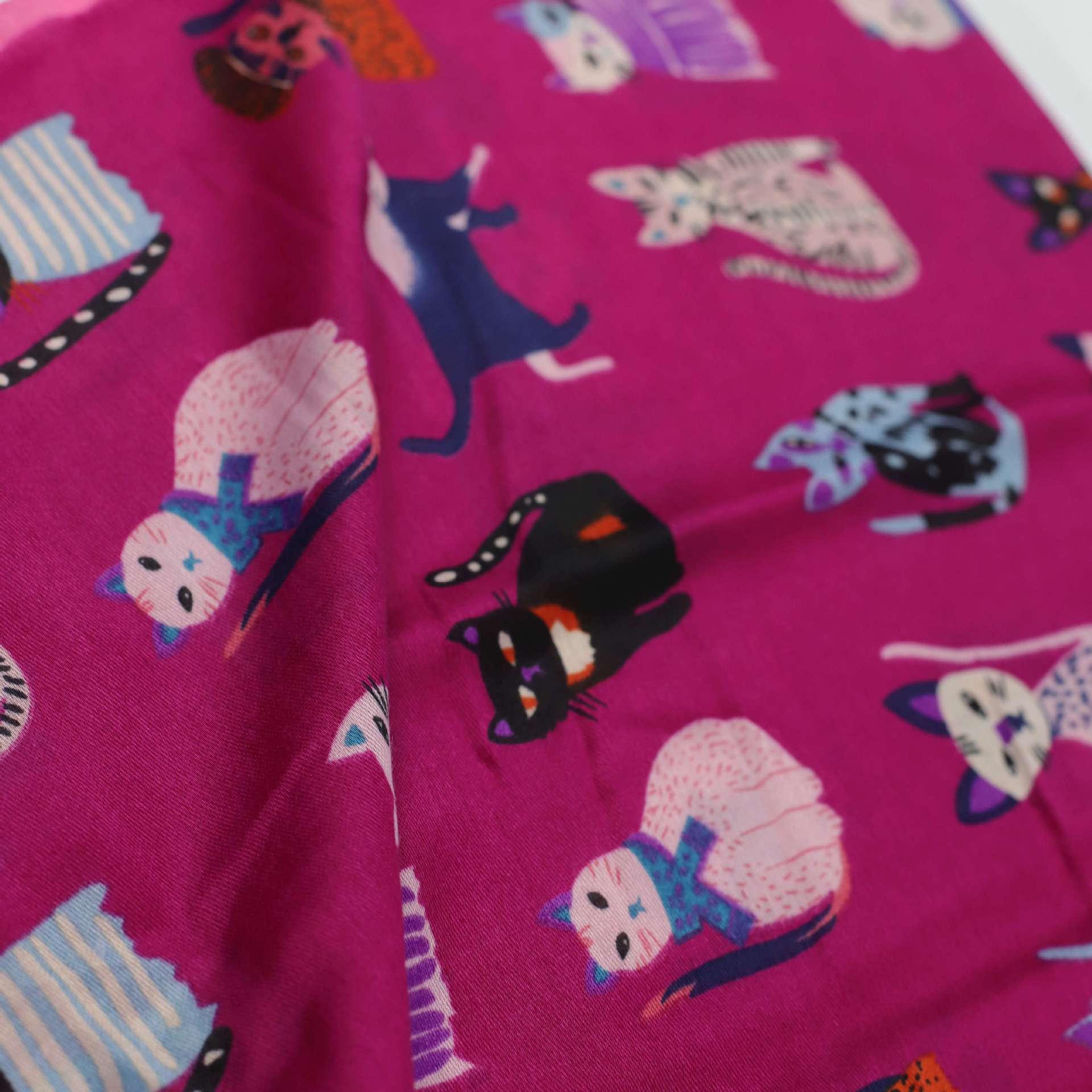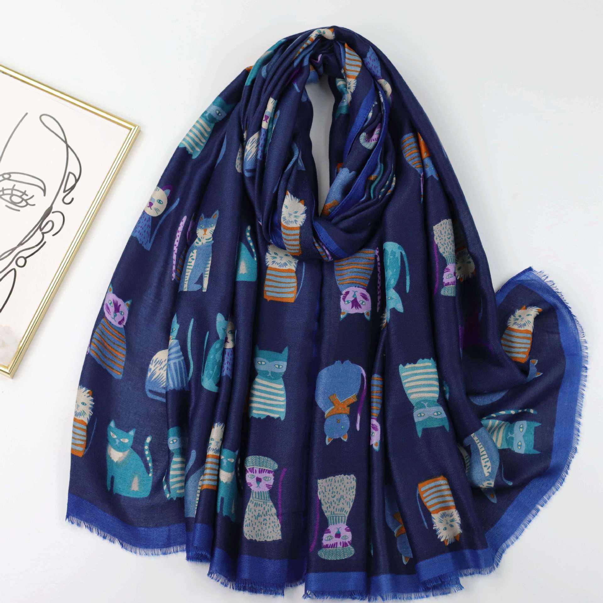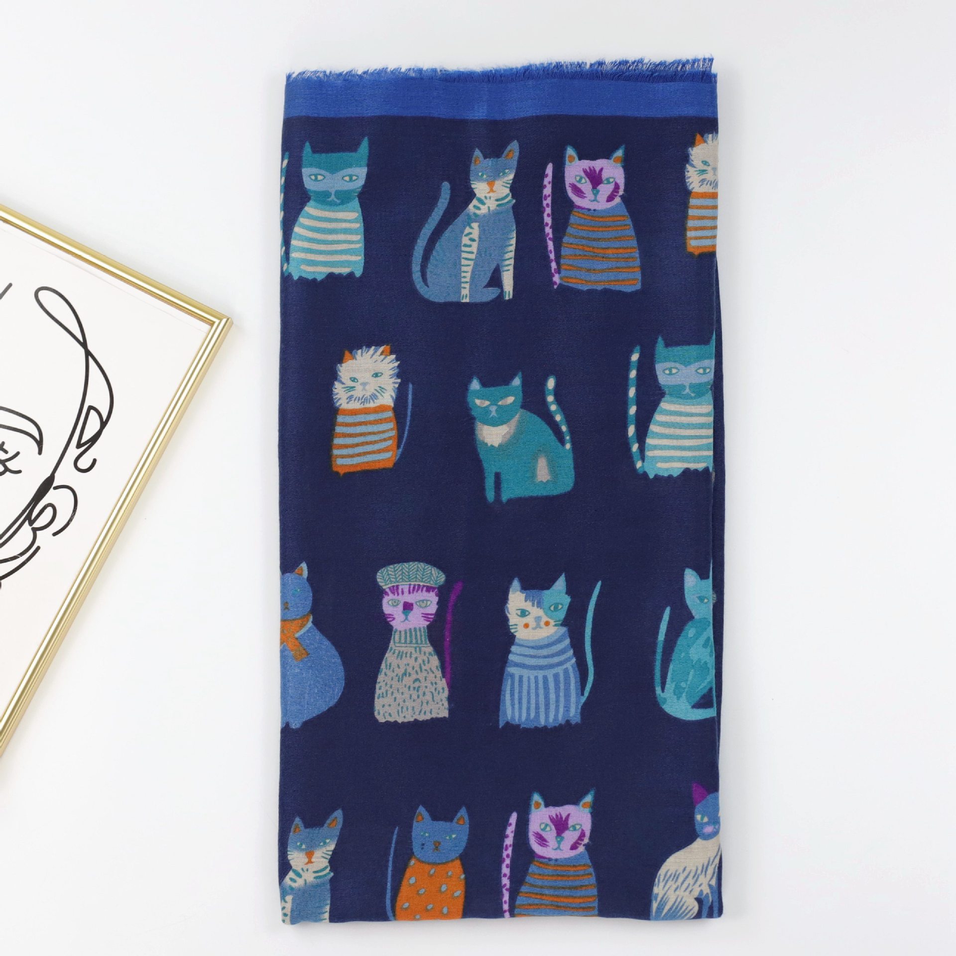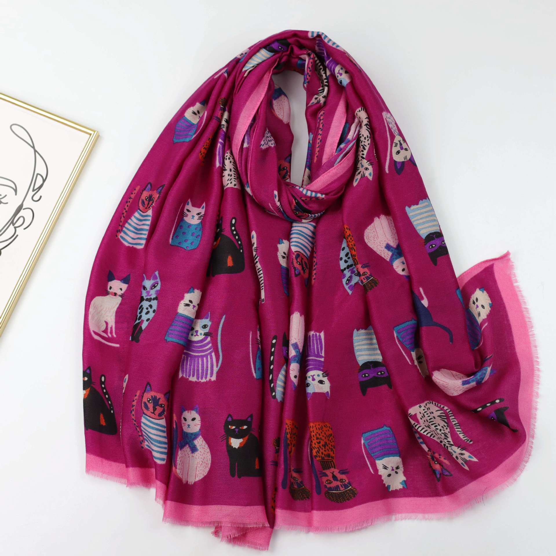 고양이의 천국 32수 새틴 패브릭 공장 직판 해외 수출 프린트 롱 스카프 여행 휴가용 자외선 차단 보온 숄