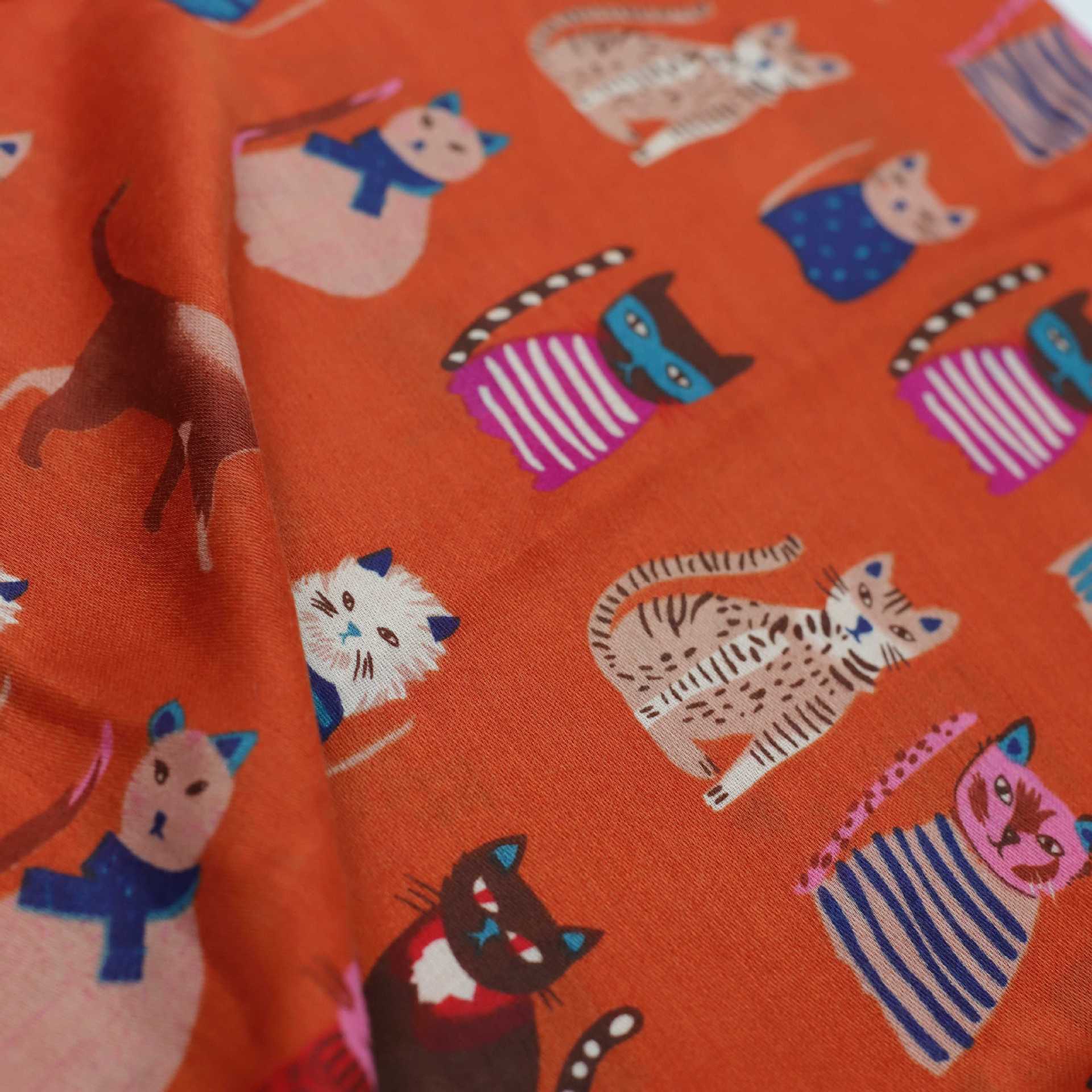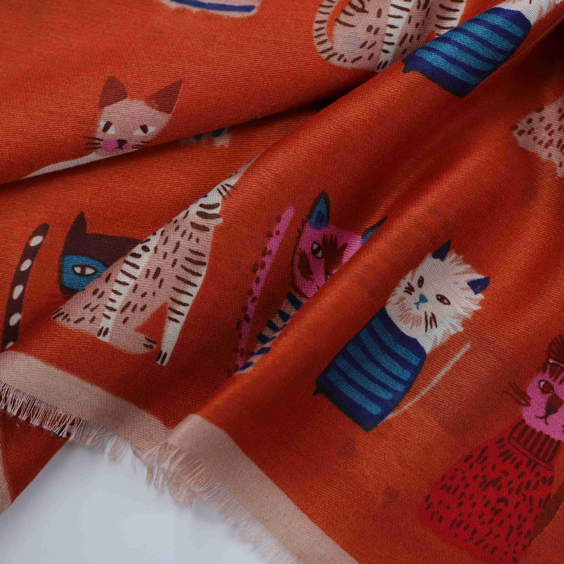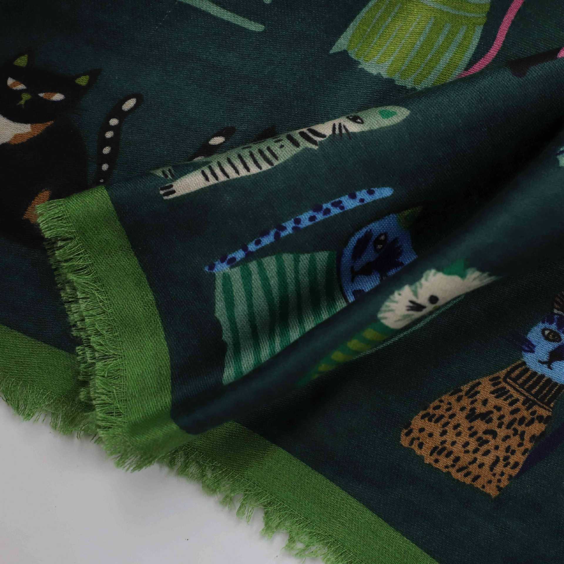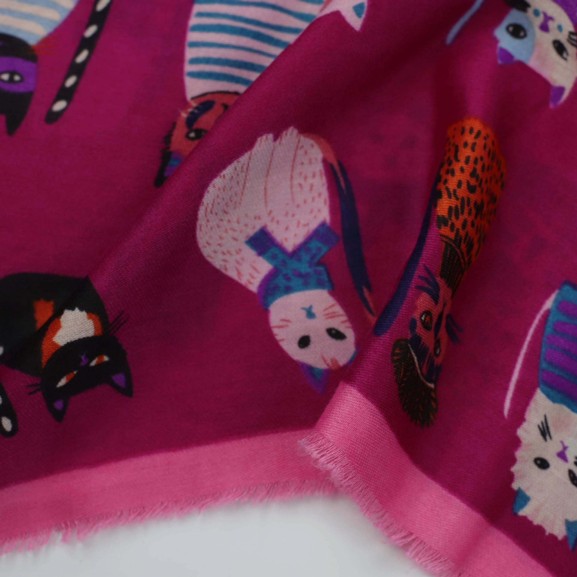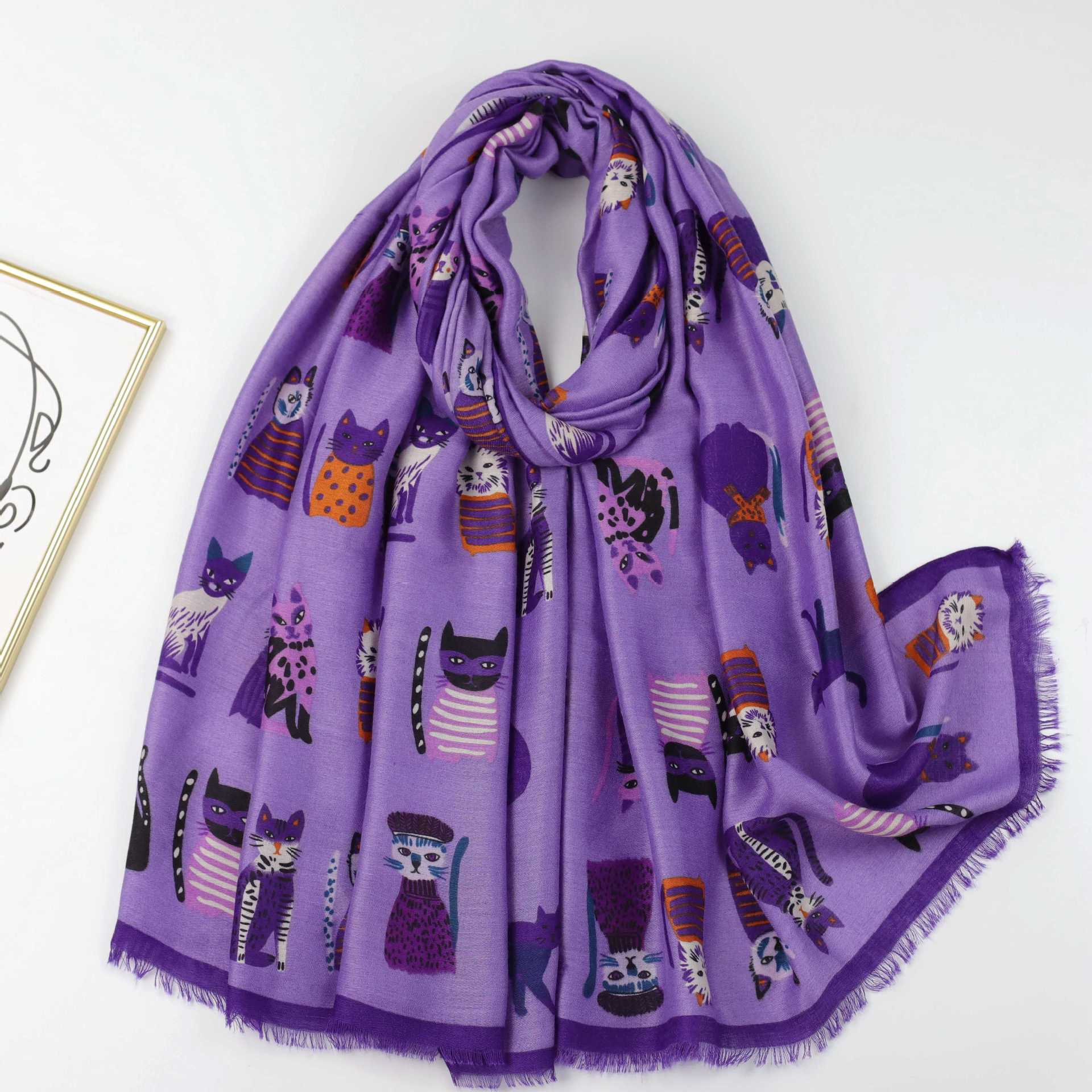 고양이의 천국 32수 새틴 패브릭 공장 직판 해외 수출 프린트 롱 스카프 여행 휴가용 자외선 차단 보온 숄