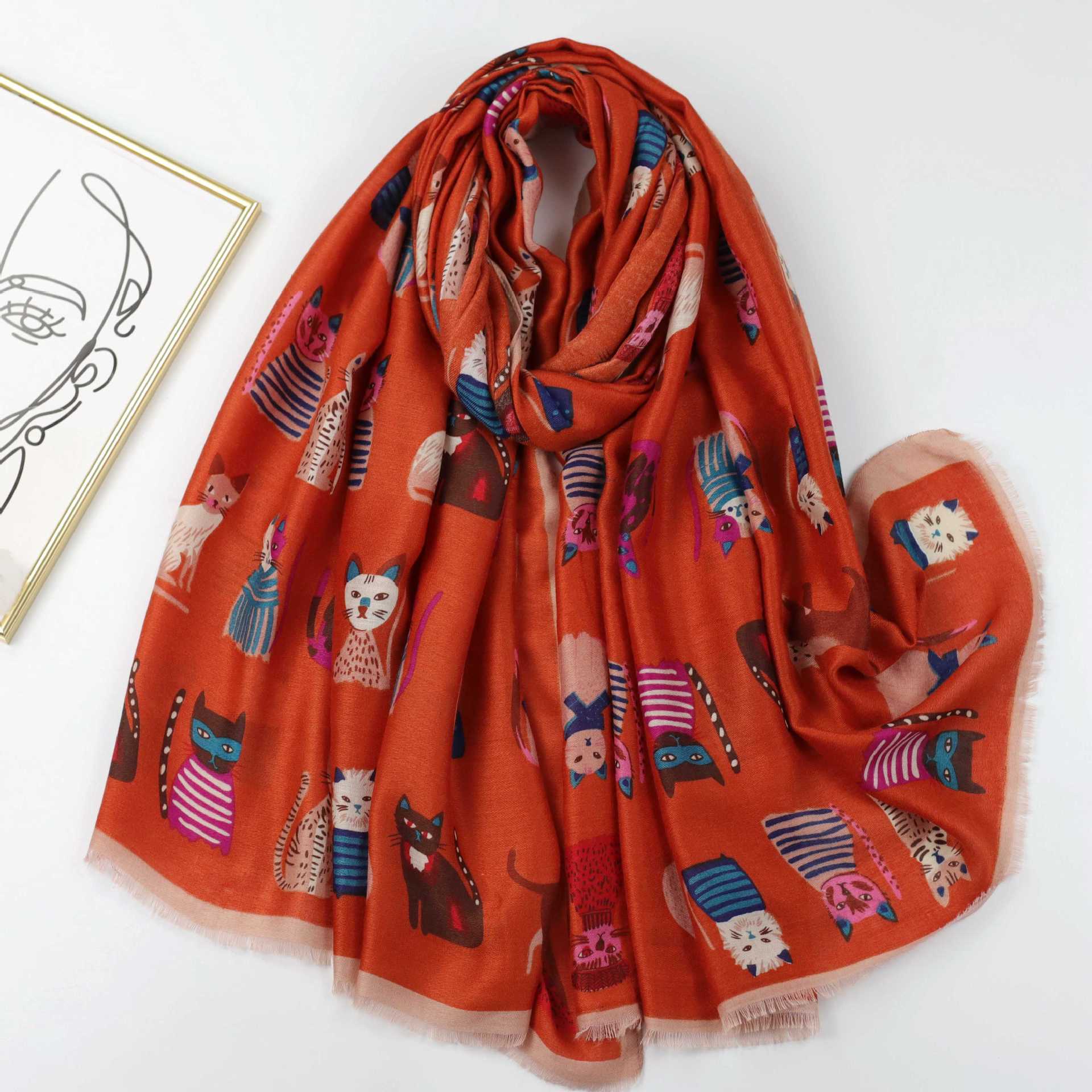 고양이의 천국 32수 새틴 패브릭 공장 직판 해외 수출 프린트 롱 스카프 여행 휴가용 자외선 차단 보온 숄스토어 가기
