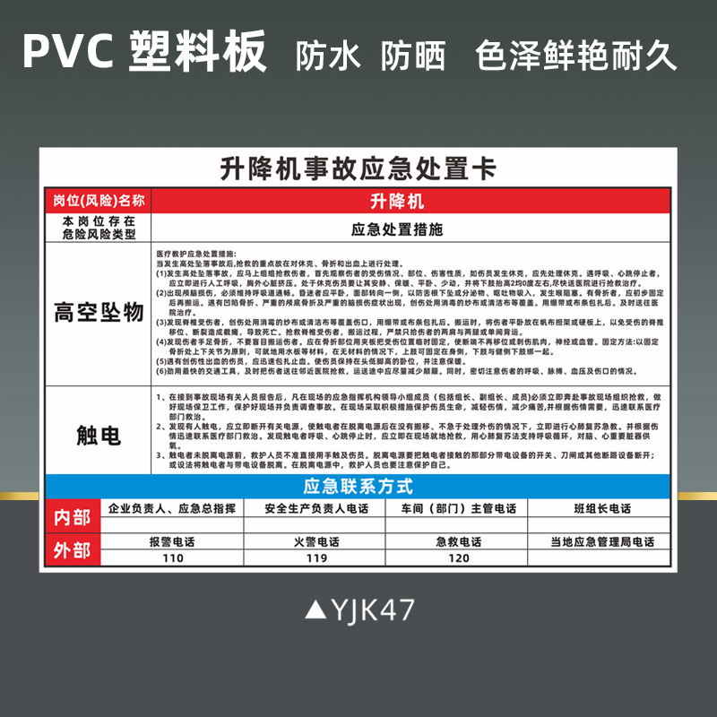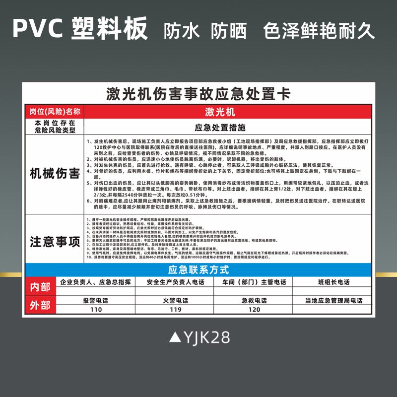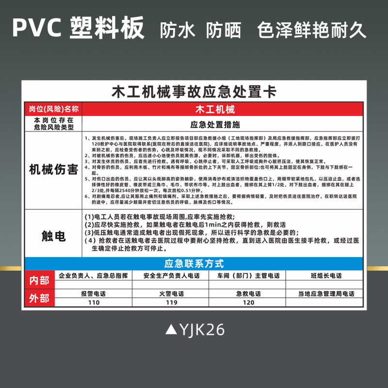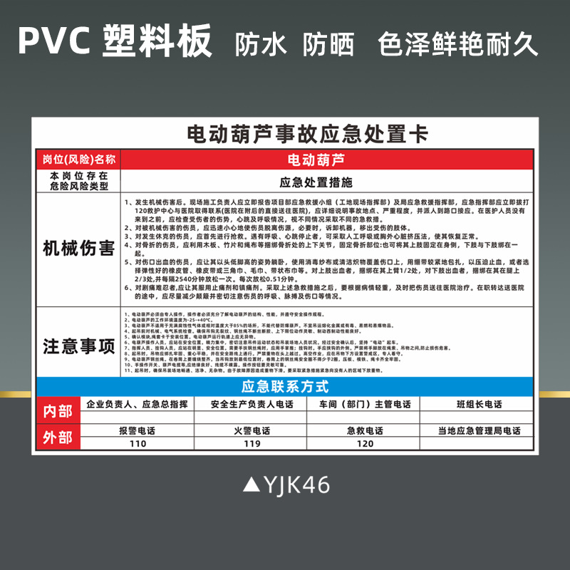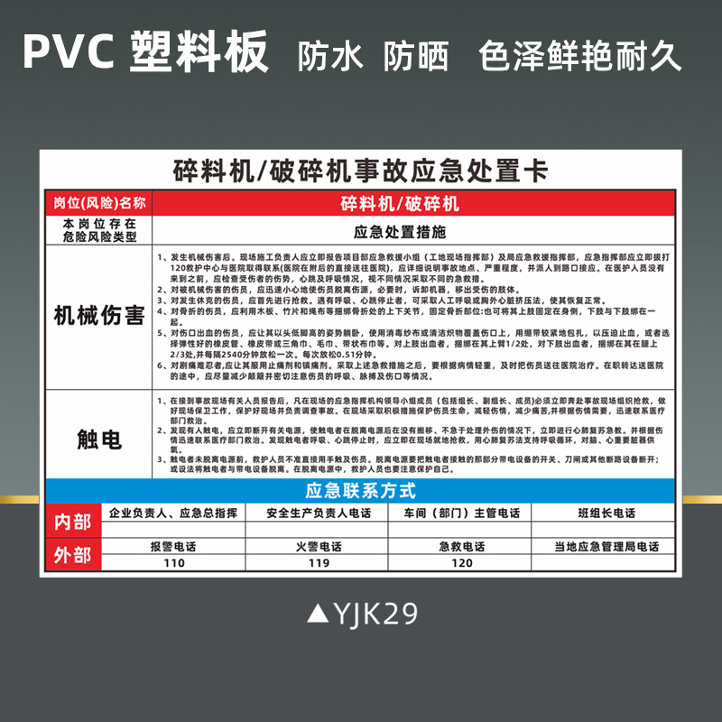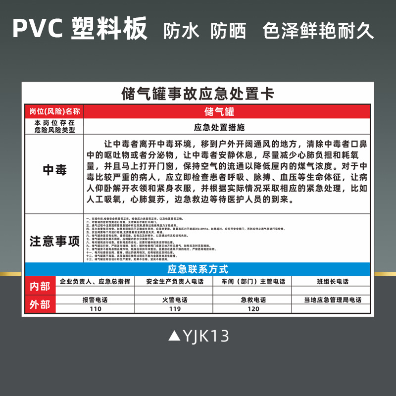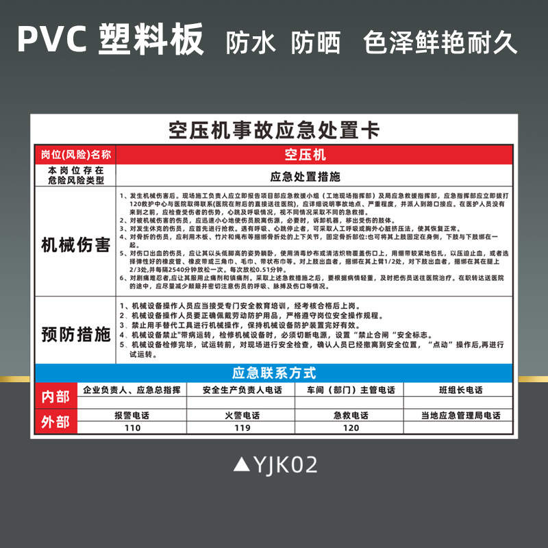 공기 압축기 안전 식별 표지판 비상 처리 카드 화재 감전 위험 화학 제품 누출 손상 표지판