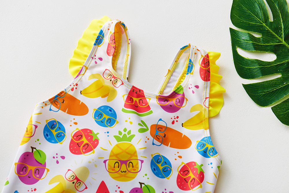 재고 3-10 세 어린이 수영복 만화 과일 인쇄 소녀 수영복 원피스 어린이 수영복스토어 가기