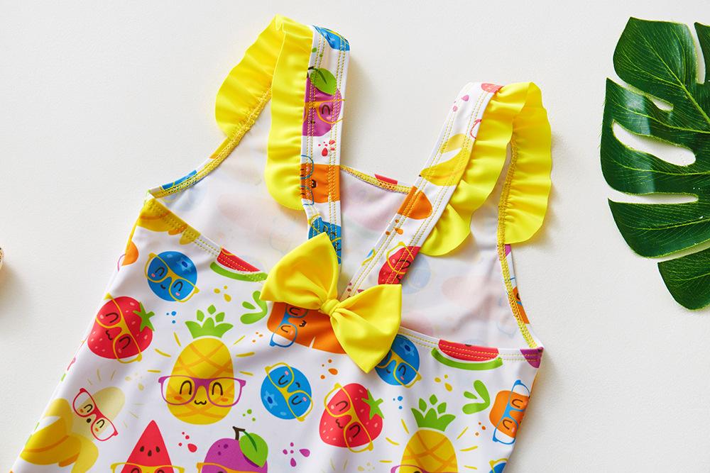 재고 3-10 세 어린이 수영복 만화 과일 인쇄 소녀 수영복 원피스 어린이 수영복