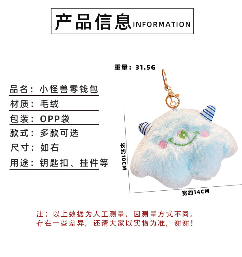 만화 봉제 괴물 열쇠 고리 여자의 절묘한 귀여운 재미있는 인형 동전 지갑 어린이 학교 가방 펜던트스토어 가기