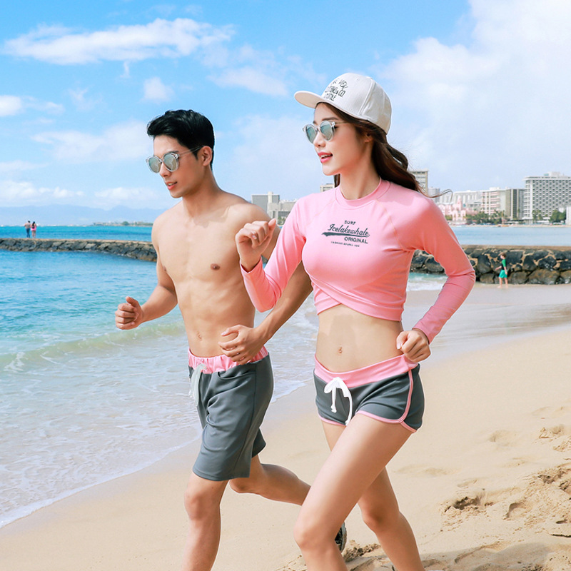 크로스-국경 커플 수영복 잠수복 여자의 자외선 차단제 세트 최고 남자의 긴팔 스노클링 세트 분할 수영복 서핑 세트